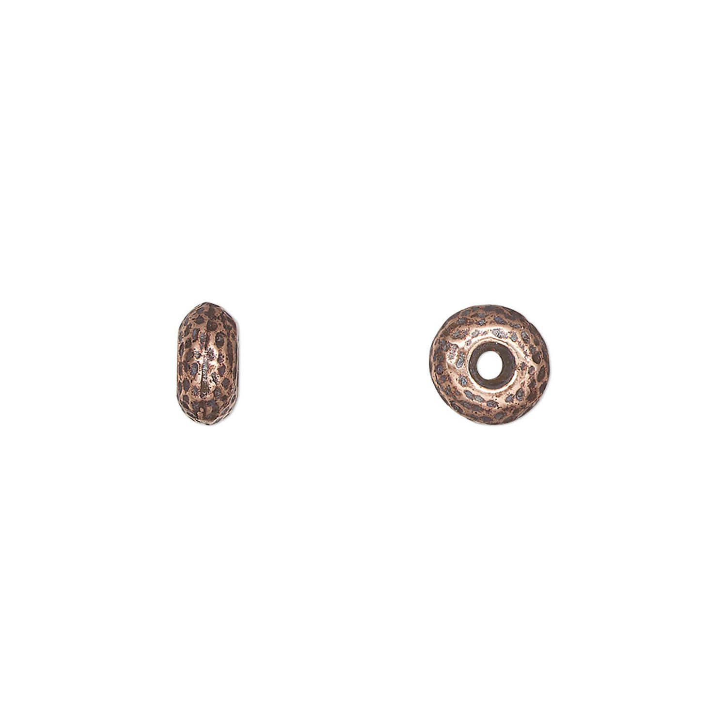 Bead, TierraCast®, "Hammertone" collection, antique copper-plated pewter (tin-based alloy), 7x4mm hammered rondelle. Sold per pkg of 20.