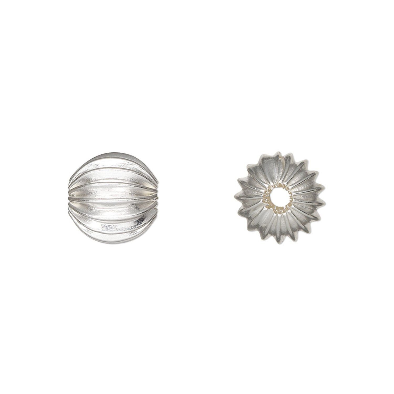 The silver-plated shine combined with the bead's corrugated shape brings beautiful textural interest to both modern and vintage-inspired designs.