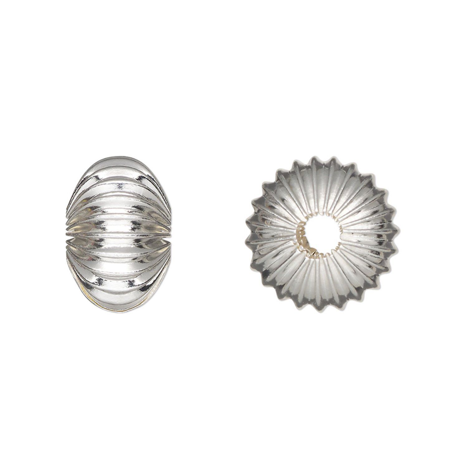 The silver-plated shine combined with the bead's corrugated shape brings beautiful textural interest to both modern and vintage-inspired designs.