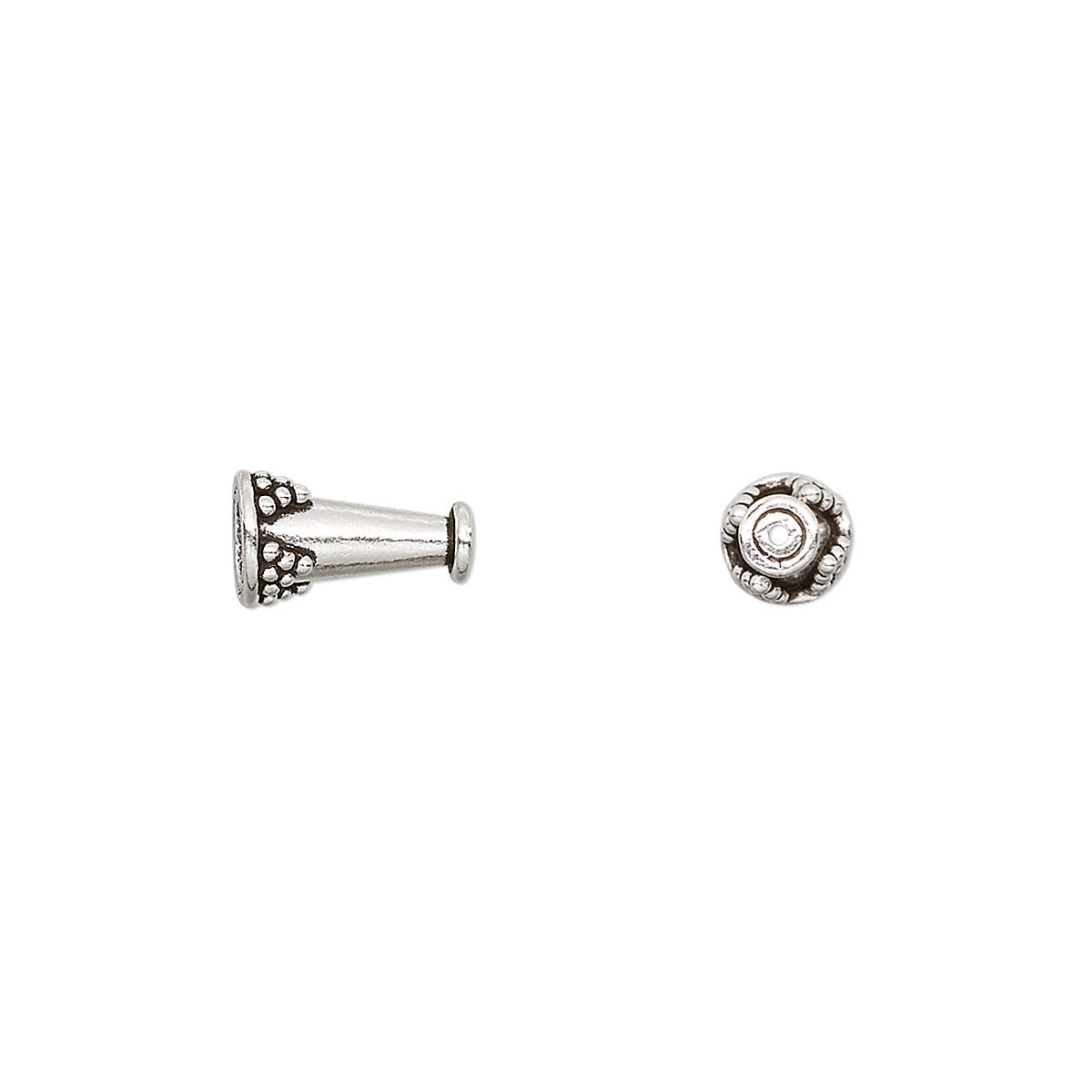 Cone, antiqued sterling silver, 9x5mm beaded with 3mm inside diameter. Sold per pkg of 2.