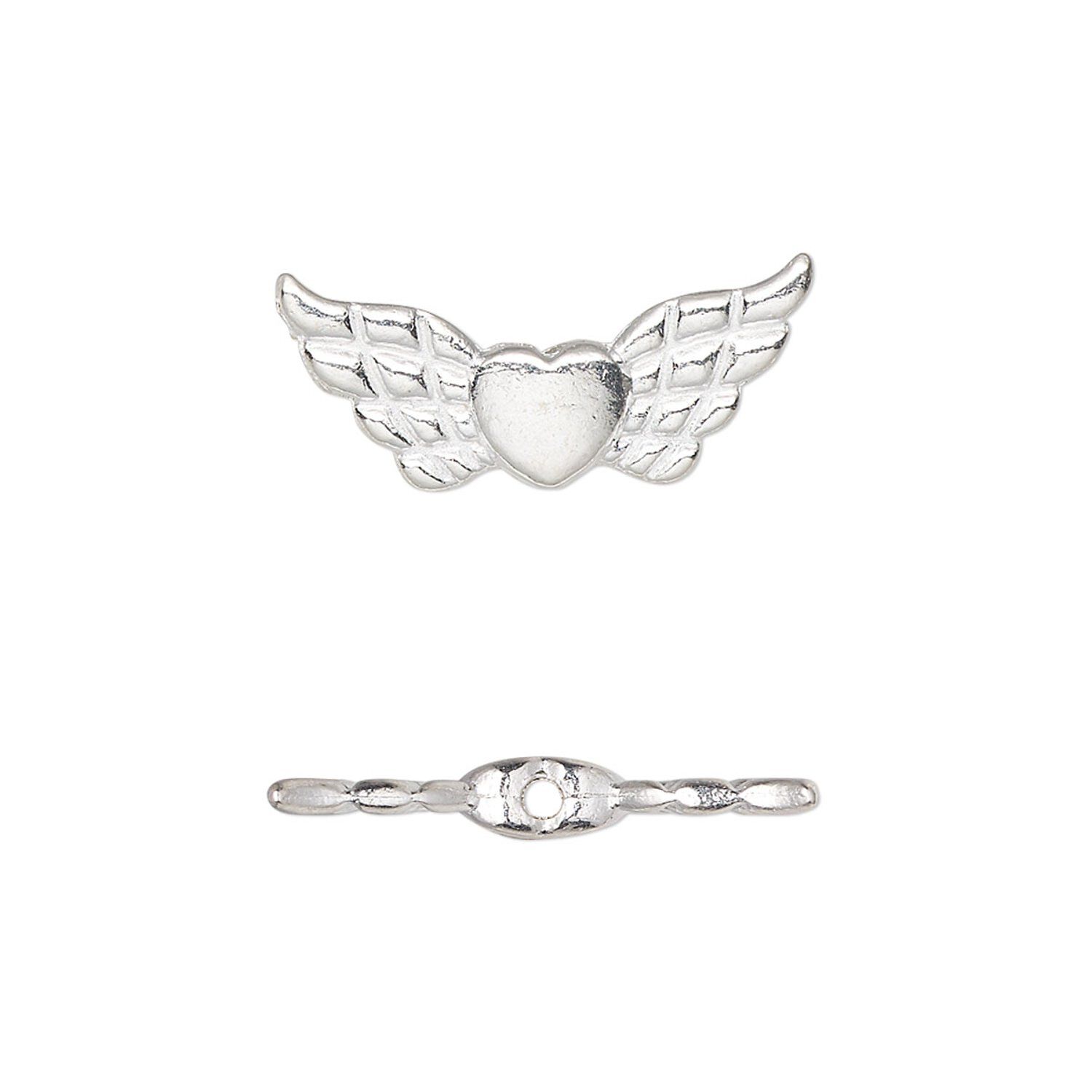Angels are a meaningful symbol in the holiday season or anytime. These double-sided "pewter" (zinc-based alloy) angel wing beads have a heart in the center and are given a shiny silver finish for a truly celestial look.