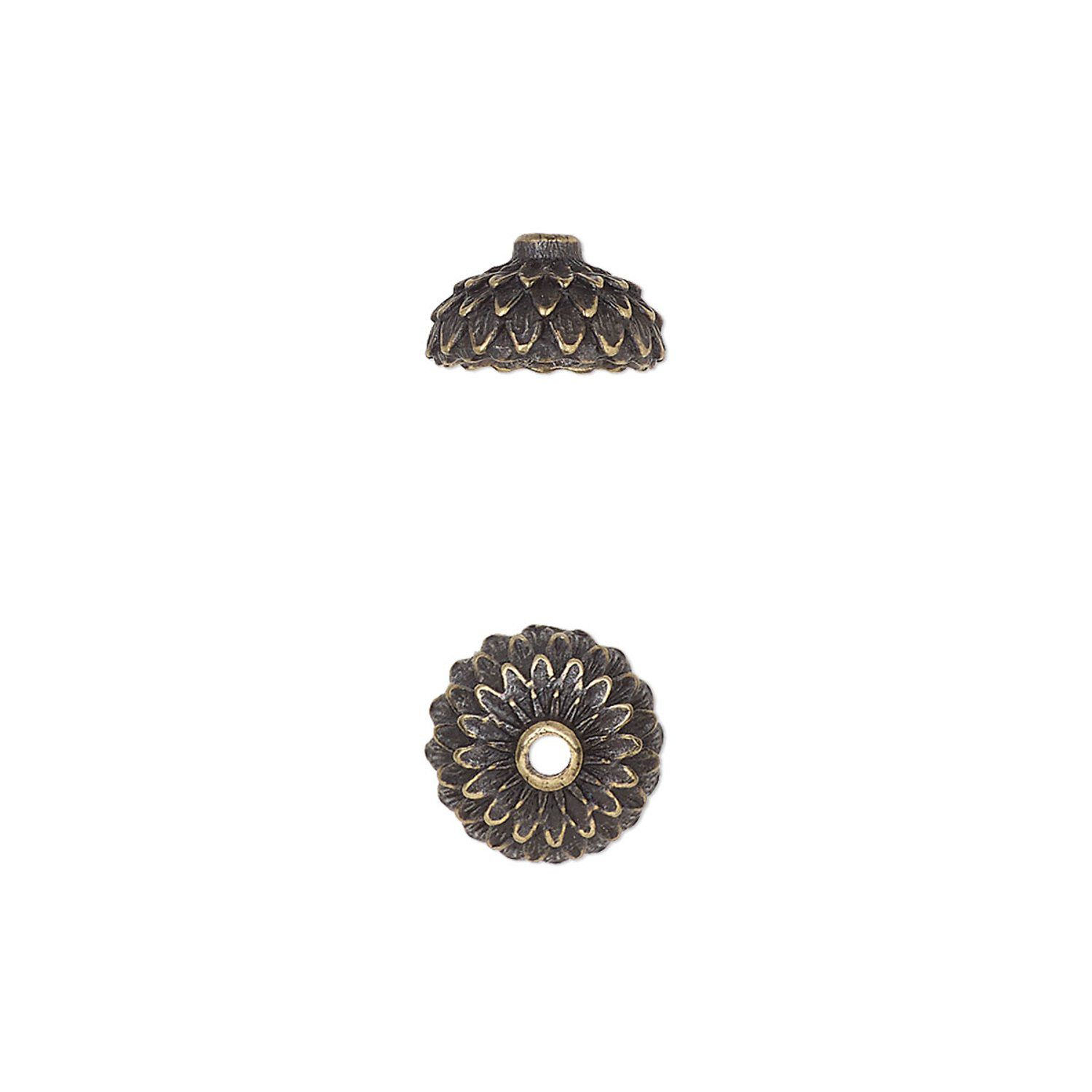 Bead cap, TierraCast®, antique brass-plated pewter (tin-based alloy), 9.5mm round with acorn cap design, fits 8mm bead. Sold per pkg of 20.