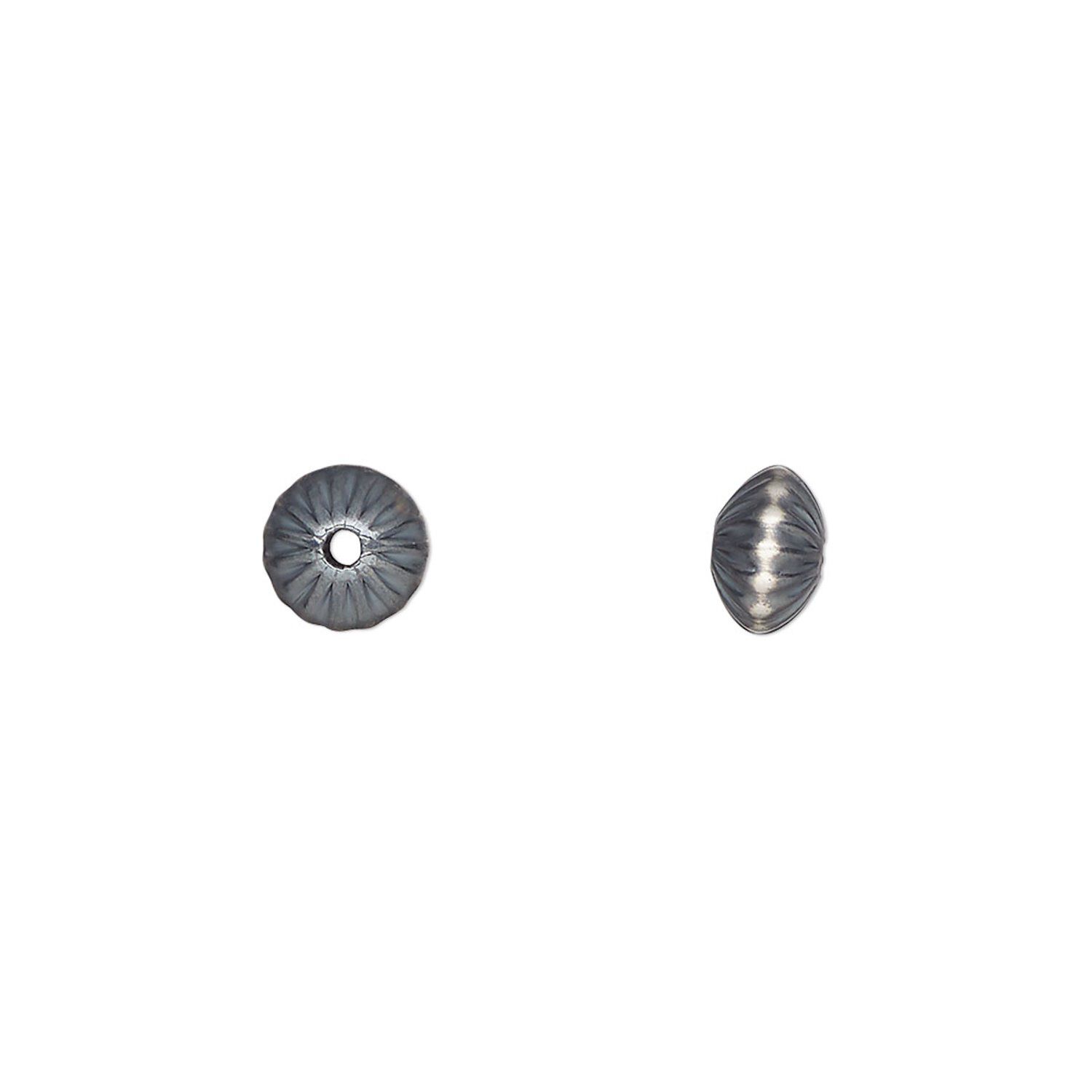 Bead, Navajo pearl style, brushed oxidized sterling silver, 6.5 x 4.5mm corrugated saucer. Sold individually.