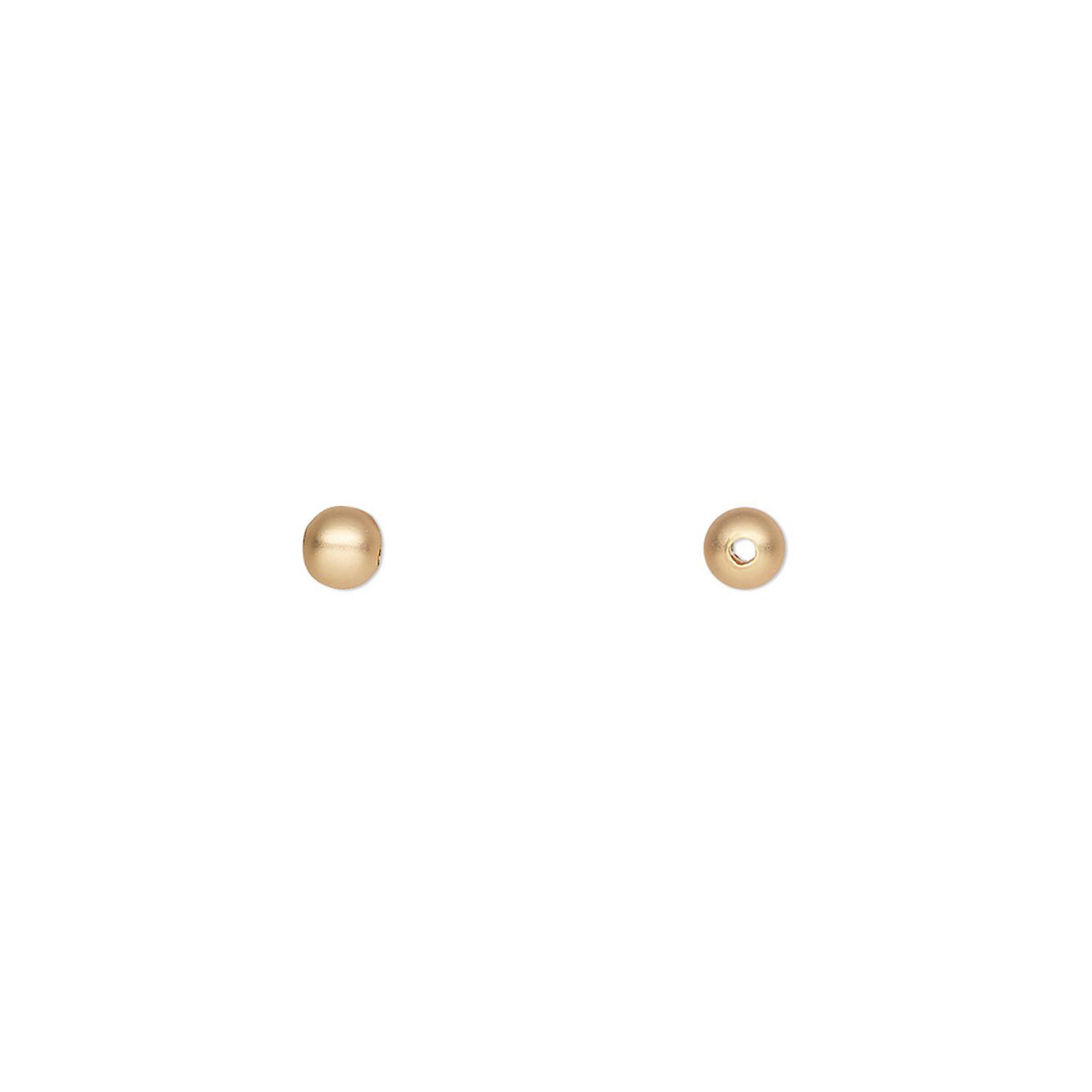 Bead, gold-plated brass with satin finish, 3mm round. Sold per pkg of 10.