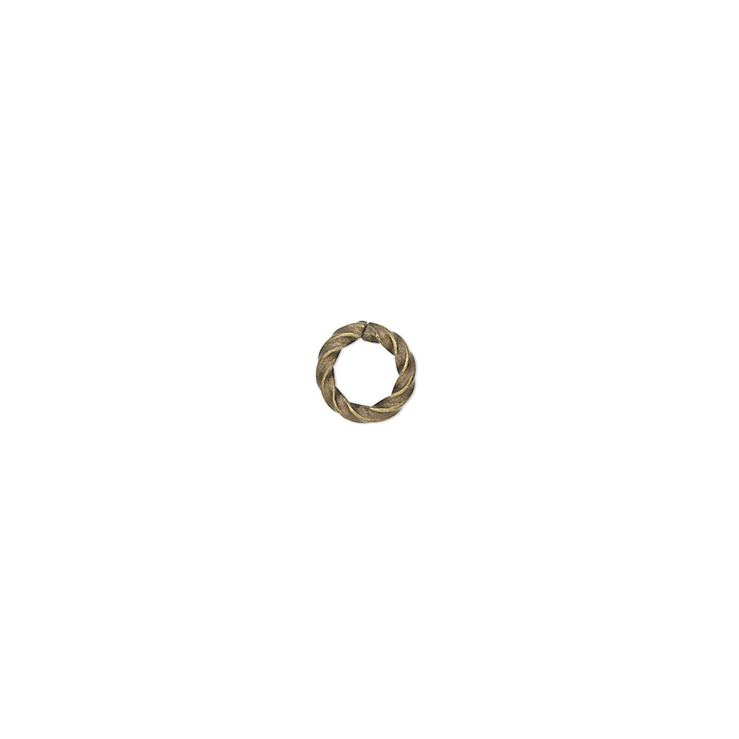 Jump ring, antique gold-plated brass, 6mm twisted round, 3.6mm inside diameter, 16 gauge. Sold per pkg of 1,000.