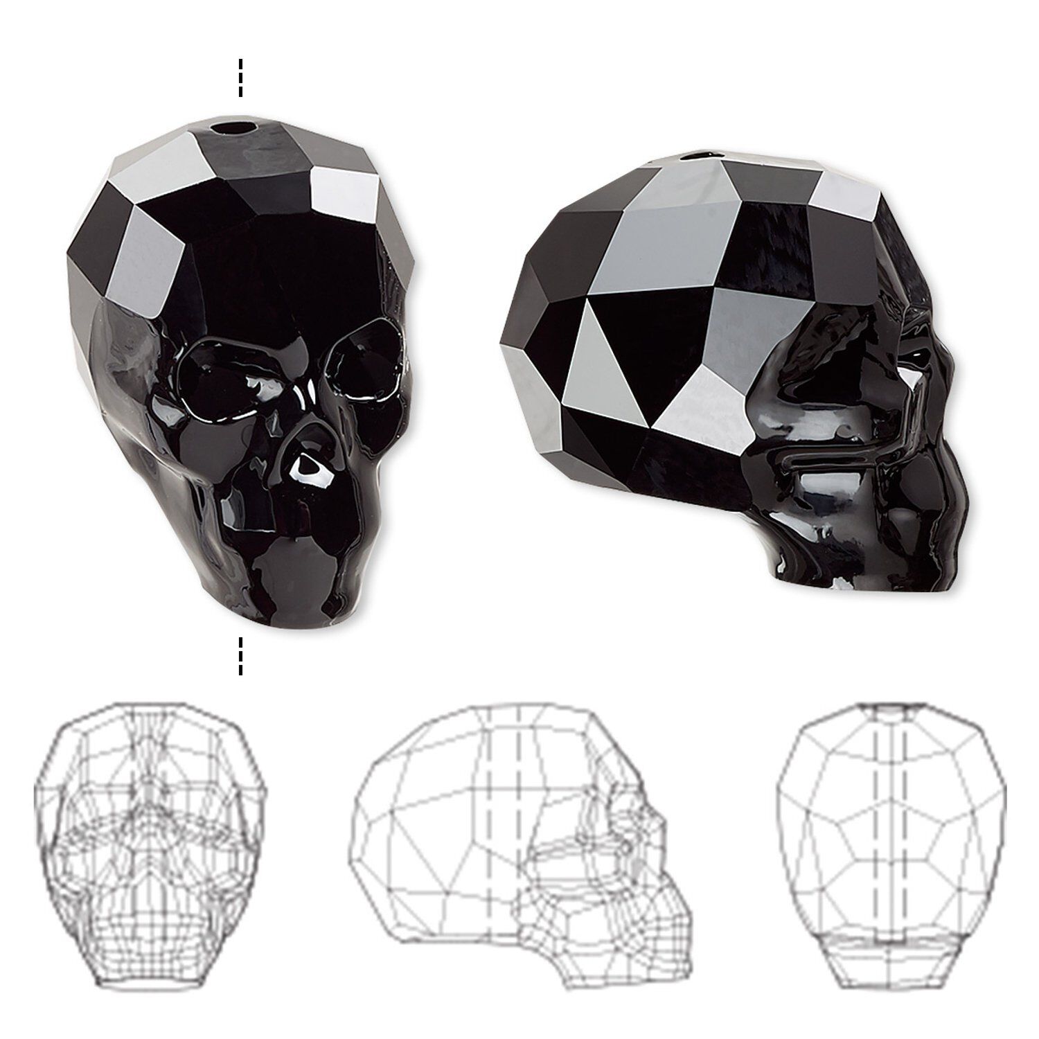 Bead 12pk jet, Swarovski® 19x18mm skull 5750
