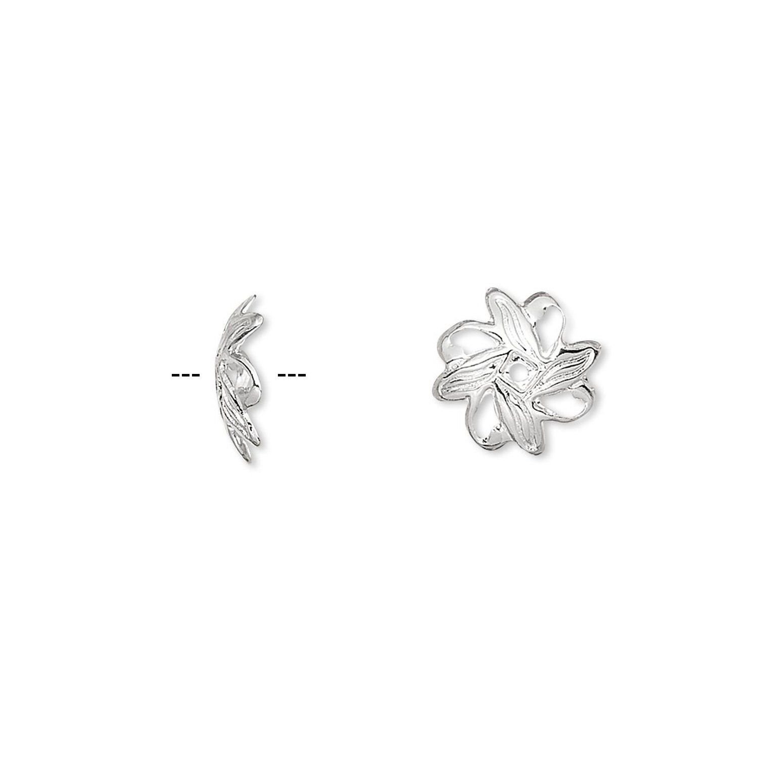 Bead cap, silver-plated brass, 10x3mm fancy leaf with cutouts, fits 10-12mm bead. Sold per pkg of 500.