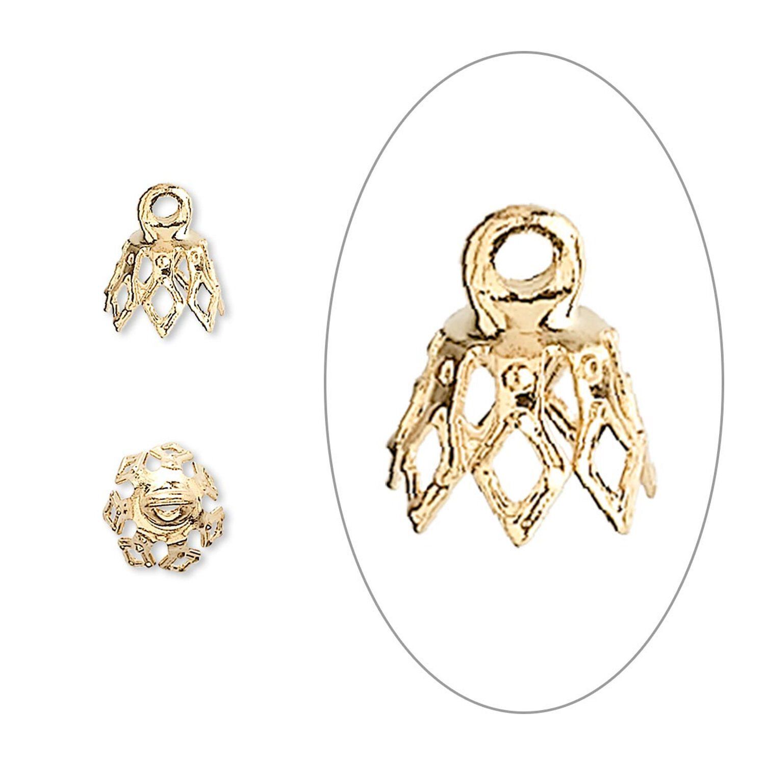 Bead cap, gold-plated brass, 8x5.5mm 7-prong bell, fits 5-7mm bead. Sold per pkg of 500.