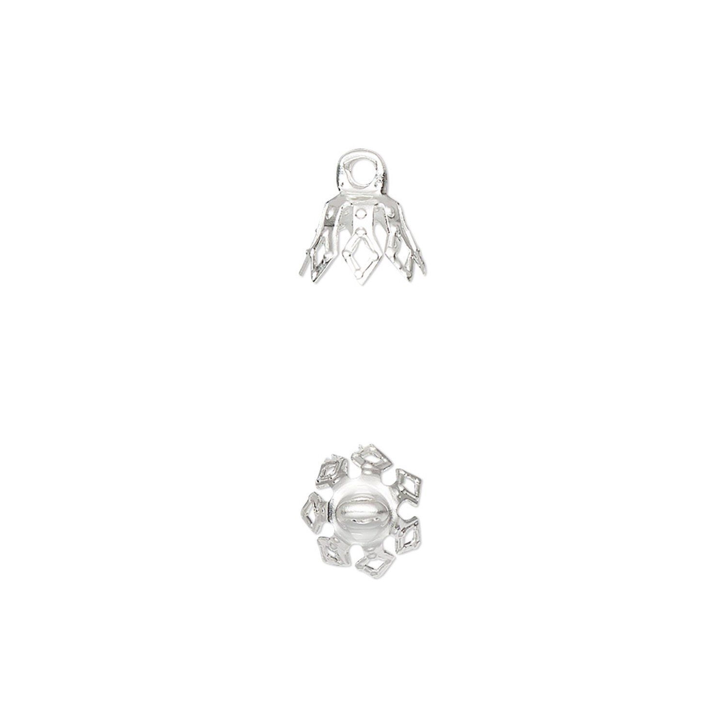 Bead cap, silver-plated brass, 8x5.5mm 7-prong bell, fits 5-7mm bead. Sold per pkg of 500.