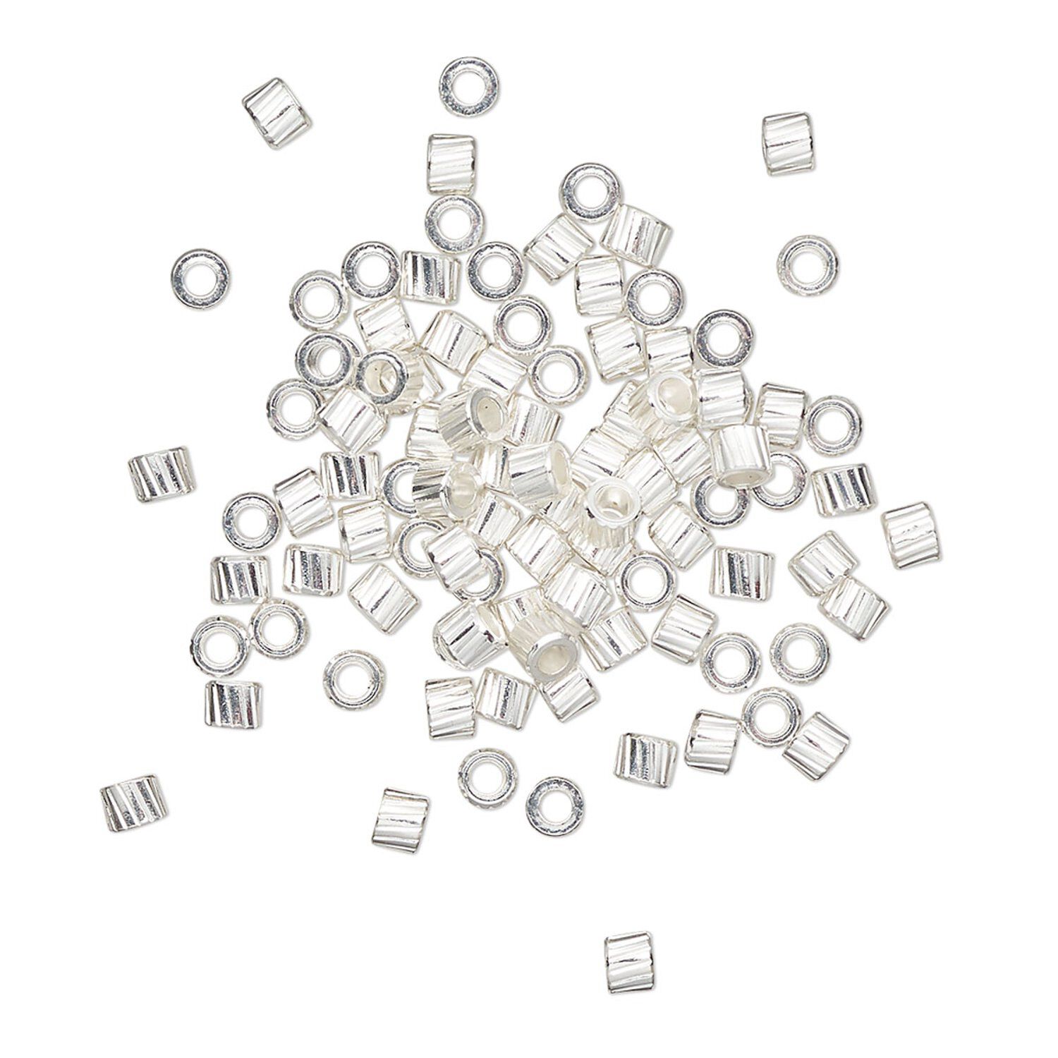 Crimp, silver-plated brass, 2.5mm corrugated round. Sold per pkg of 500.