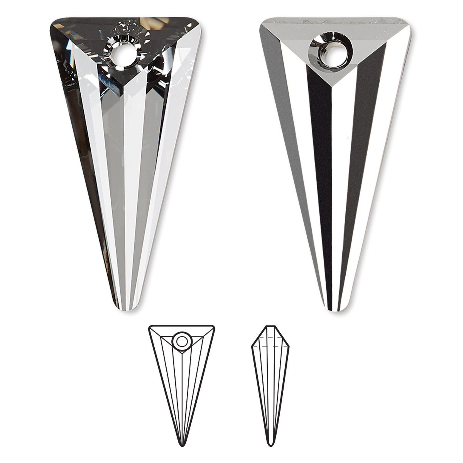 Drop 36pk crystal silver night, Swarovski® 28x14mm pendant spike 6480
