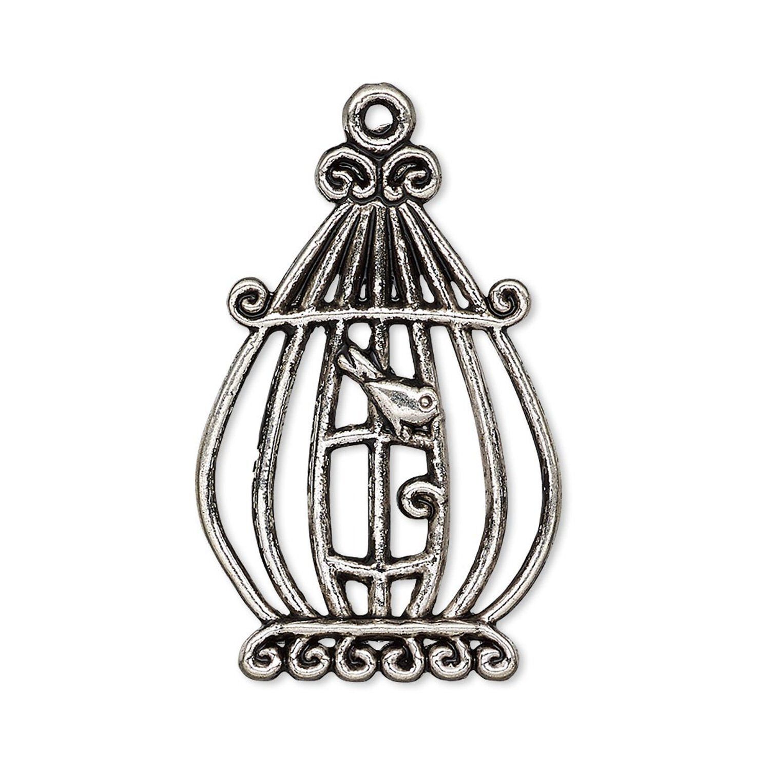 Symbolizing the desire for freedom, these bird in cage focals are made from corrosion-resistant "pewter" (zinc-based alloy) to make a long-lasting addition to any jewelry design. The antiqued silver finish adds the look and allure of aged precious metal at an affordable price.