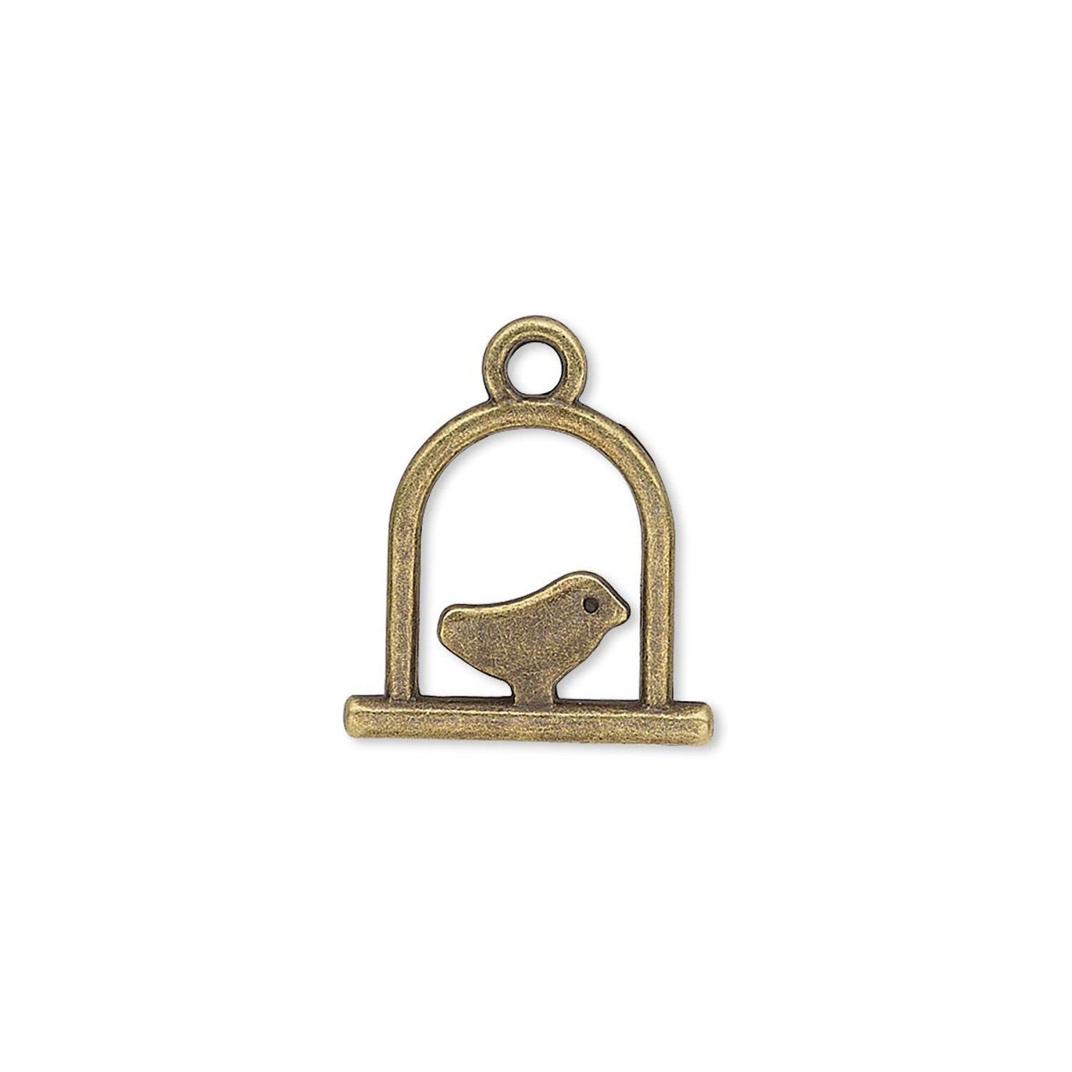 A symbol of love and romance, this love bird on a swing design is made from corrosion-resistant "pewter" (zinc-based alloy) to make a long-lasting addition to any jewelry design. The antique brass plating adds the look and allure of aged precious metal at an affordable price.