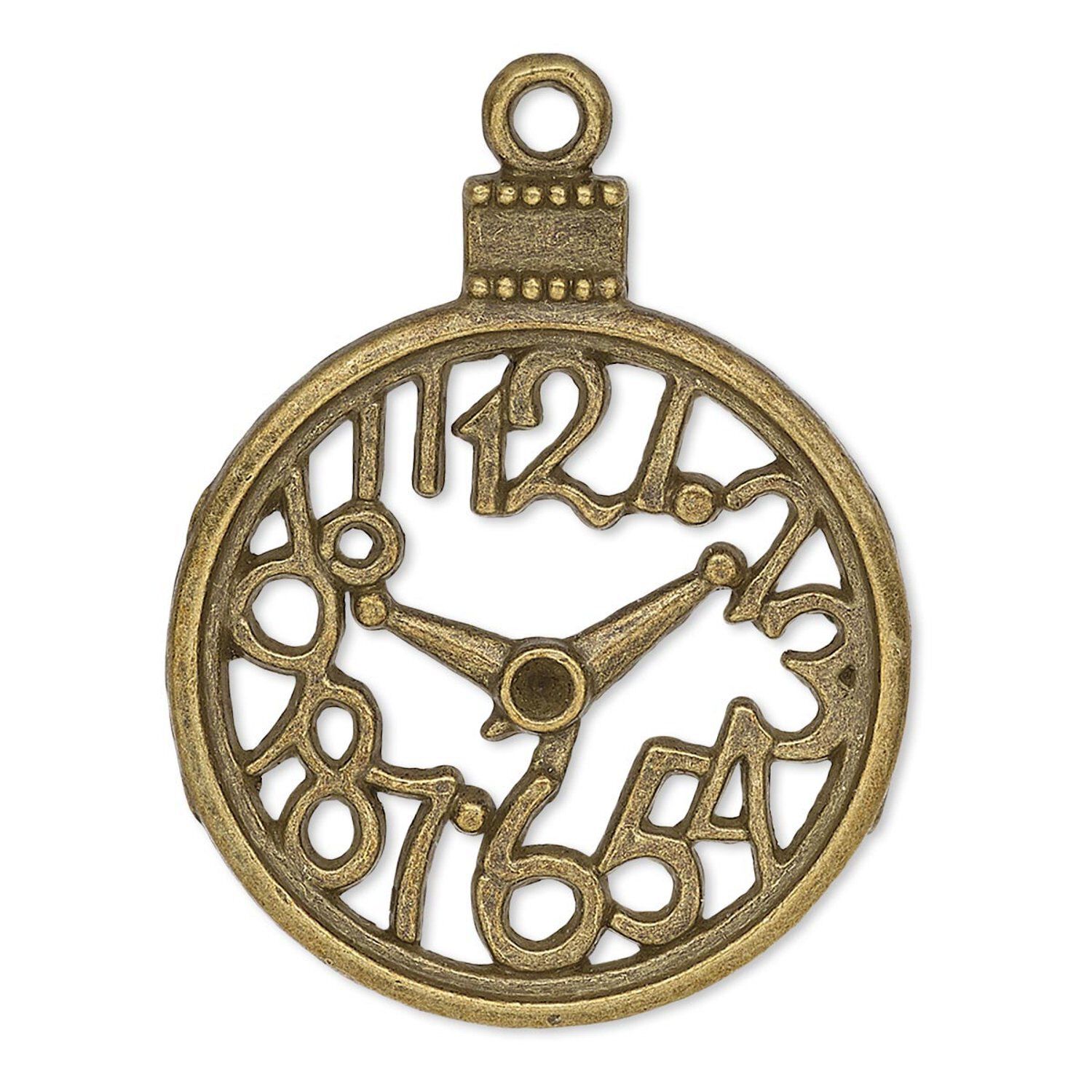 With an old-style analog display, these open clock faces are made from corrosion-resistant "pewter" (zinc-based alloy) to make a timeless addition to any jewelry design. The antique brass plating adds the look and allure of aged precious metal at an affordable price.