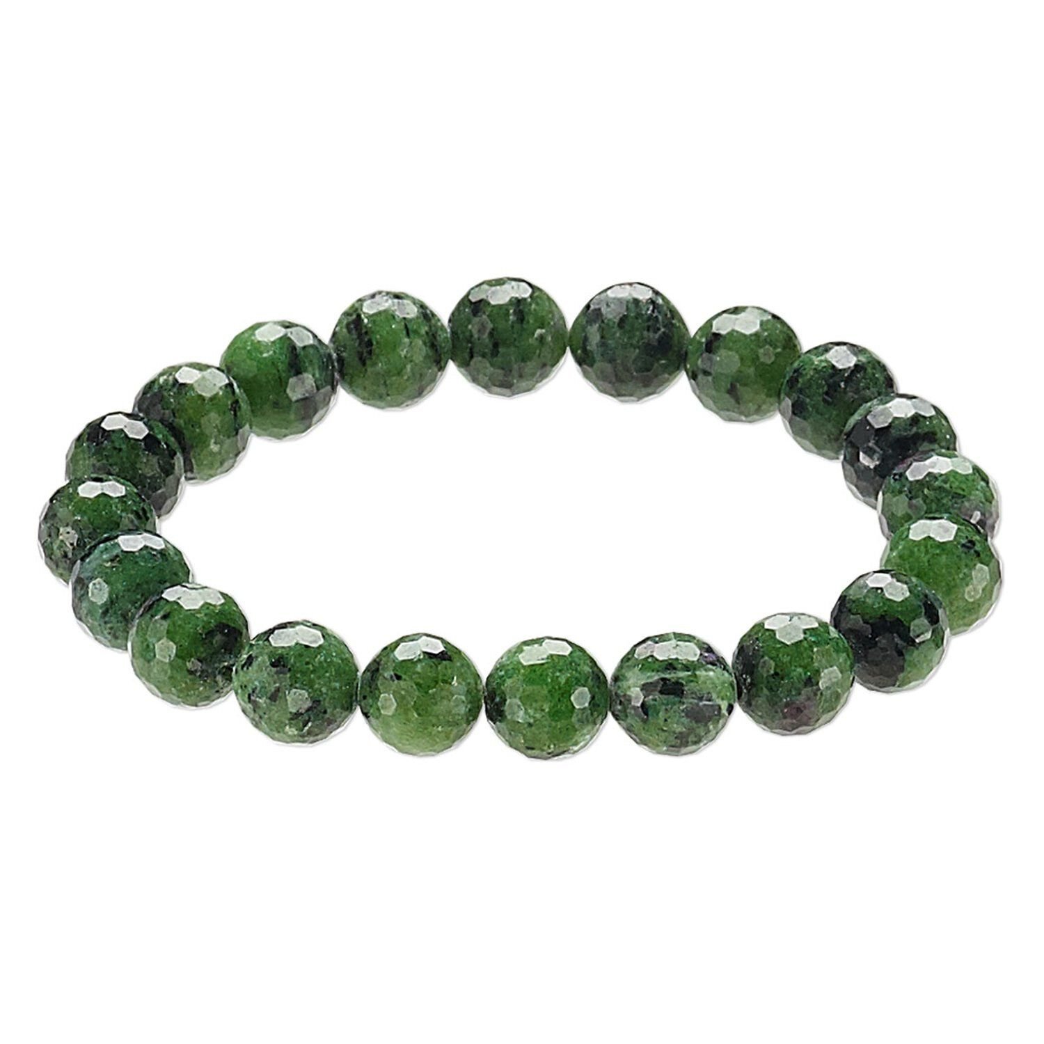 Ruby in zoisite 1pkg1, faceted round bracelet natural 8 inch 9-10mm