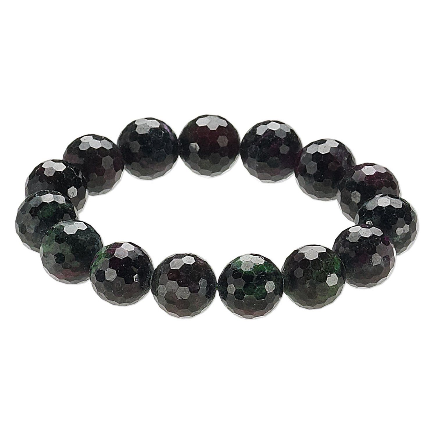 Ruby in zoisite 1pkg1, faceted round stretch bracelet natural 9 inch 13-14mm