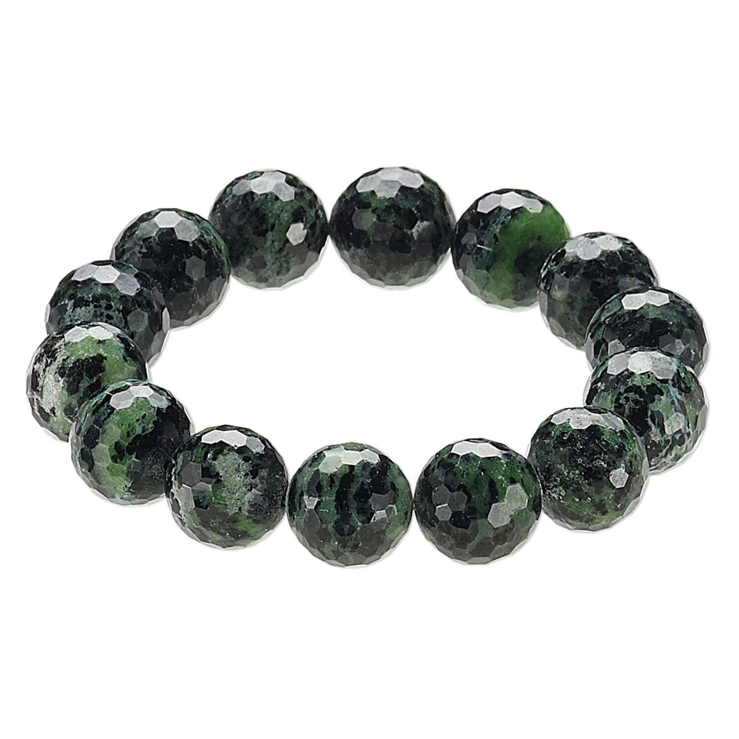 Ruby in zoisite 1pkg1, faceted round stretch bracelet natural 9 inch 15-16mm