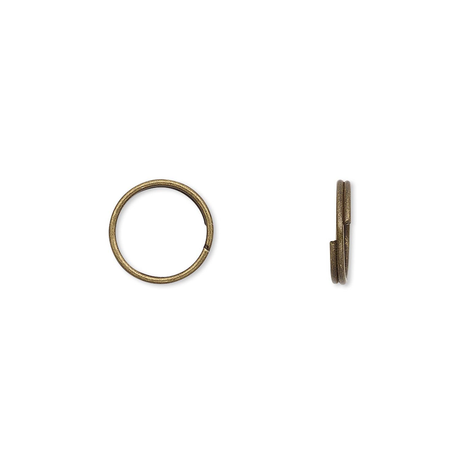 Split ring, antique brass-finished steel, 10mm round with 8.5mm inside diameter. Sold per pkg of 1,000.