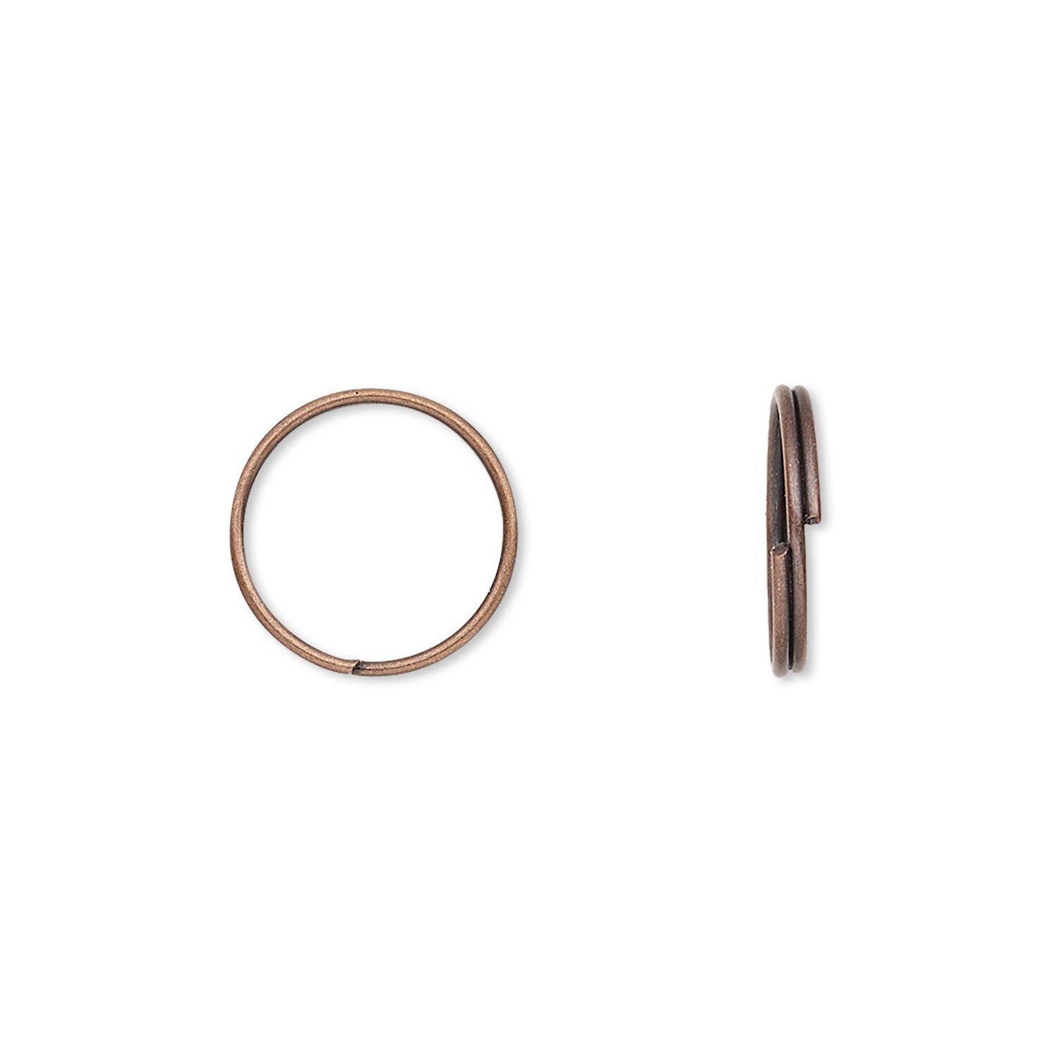 Split ring, antique copper-finished steel, 12mm round with 10.4mm inside diameter. Sold per pkg of 1,000.