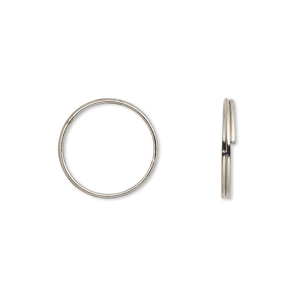 Split ring, imitation nickel-finished steel, 15mm round with 13.6mm inside diameter. Sold per pkg of 1,000.