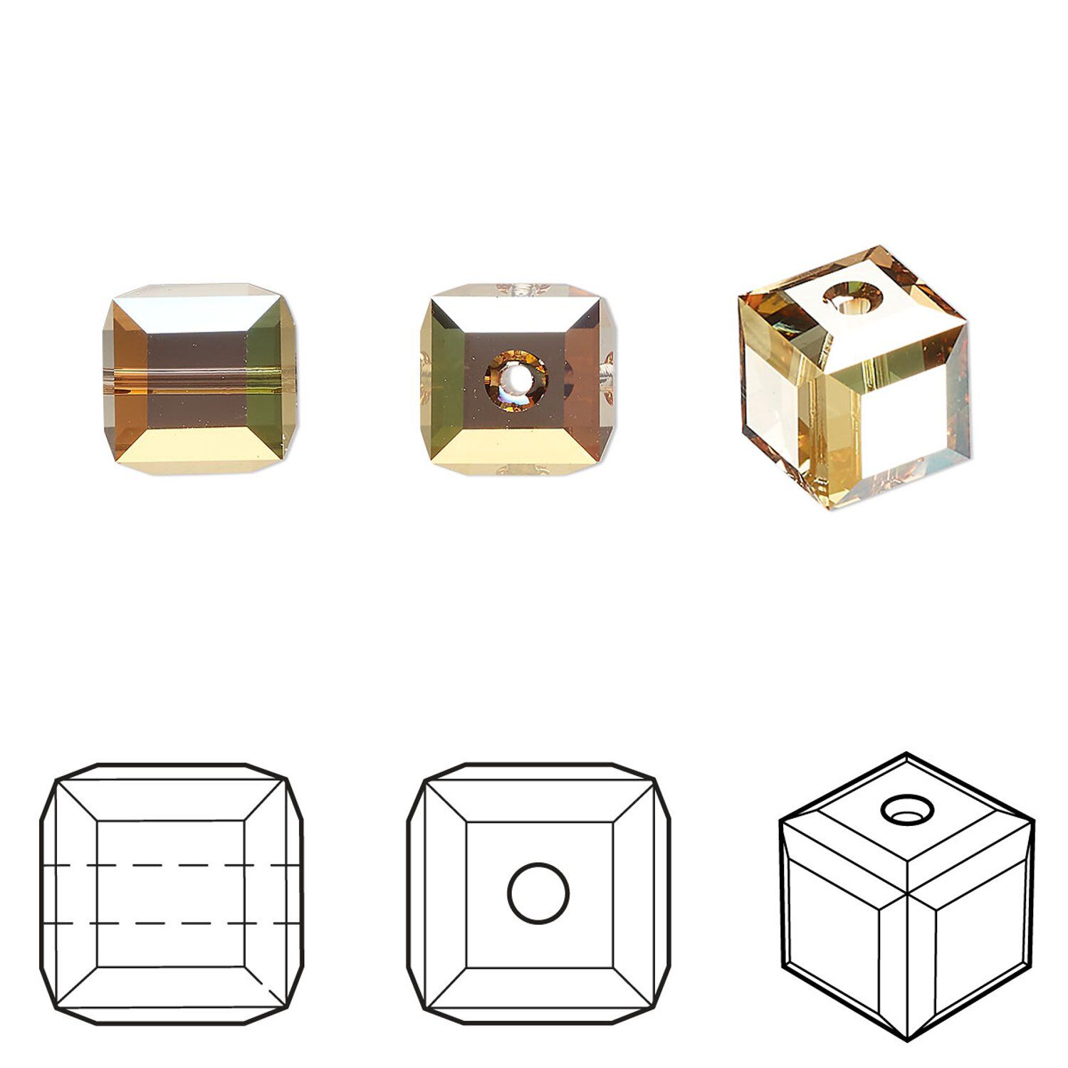 Bead 48pk crystal metallic sunshine, Crystal Passions® 8mm cube 5601
