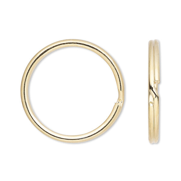 Steel split rings with a gold plating give added security to jewelry designs. Similar to a key ring--chain, eyepins and wire loops easily slide onto ring to ensure a stable hold.