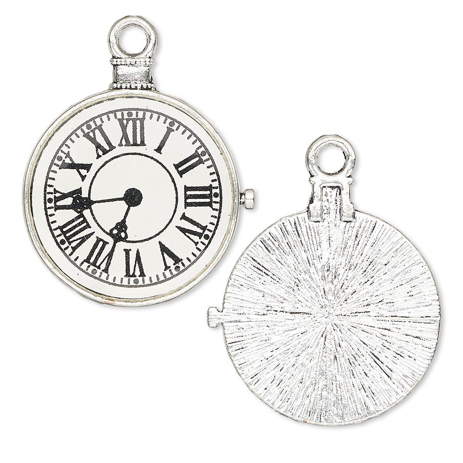 Give jewelry designs a touch of timeless style with these pocket watch focals. Rendered in antique silver-plated "pewter" (zinc-based alloy).