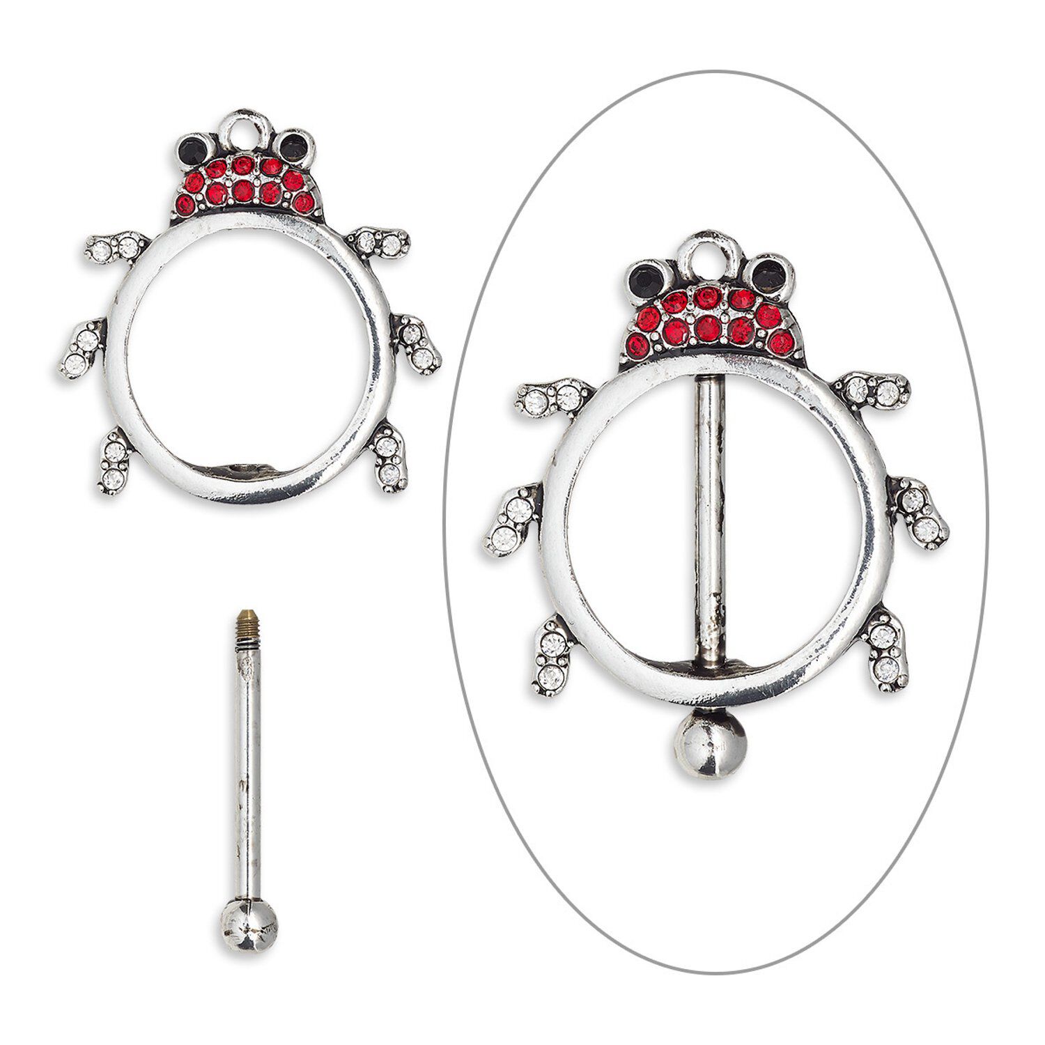 Ladybug-styled focal component features glass rhinestones, brass body and antique silver-finished "pewter" (zinc-based alloy) twist-off shaft with ball end. Focal component is designed to fit Dione® beads with a hole size of 3mm or larger.