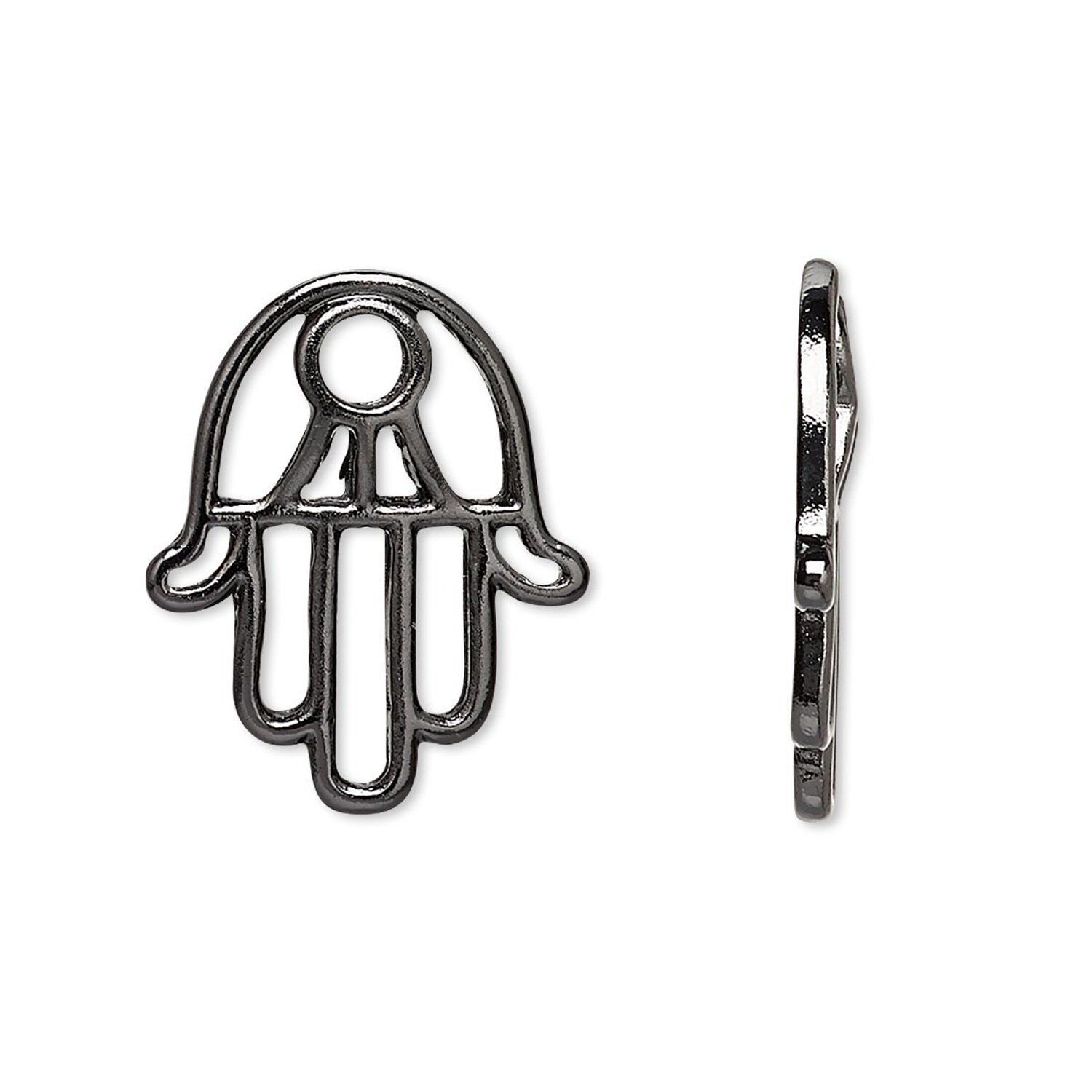 Component, painted "pewter" (zinc-based alloy), black, 23x18mm single-sided Fatima hand with cutouts. Sold per pkg of 2.