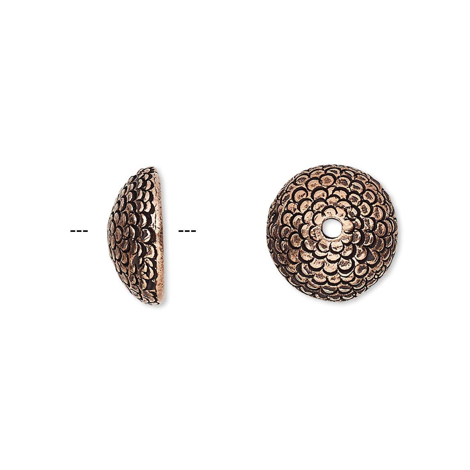 Bead cap, antique copper-plated pewter (tin-based alloy), 12.5x5mm textured round, fits 10-12mm bead. Sold per pkg of 2.