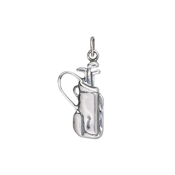 Charm, antiqued sterling silver, 19x12mm golf bag. Sold individually.