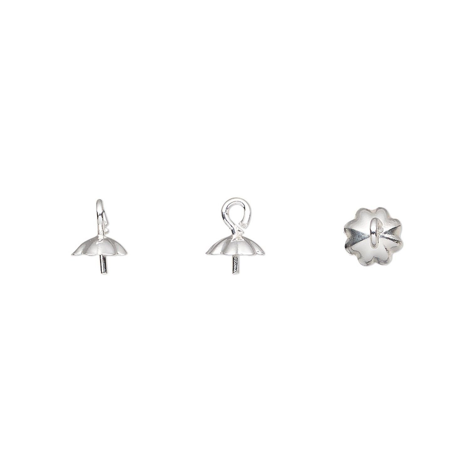 Cup, sterling silver, 5mm fluted cup with 2.5mm peg, fits 6-8mm bead. Sold individually.