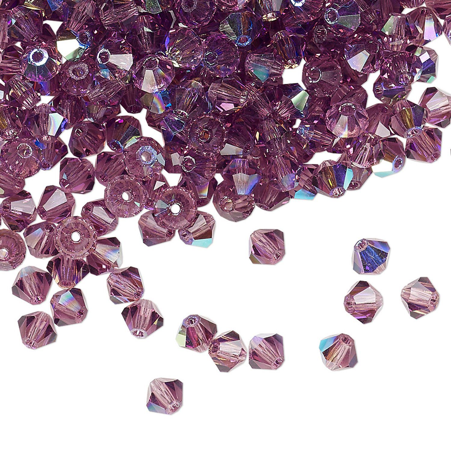 Bead 48pk amethyst AB, Preciosa Czech crystal 4mm bicone
