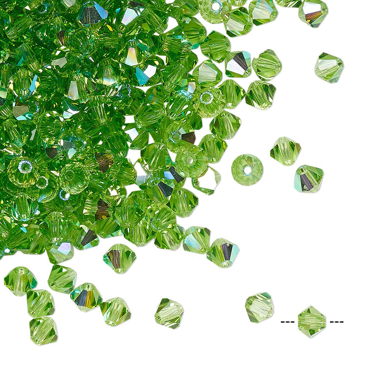 Bead 144pk peridot AB, Preciosa Czech crystal 4mm bicone