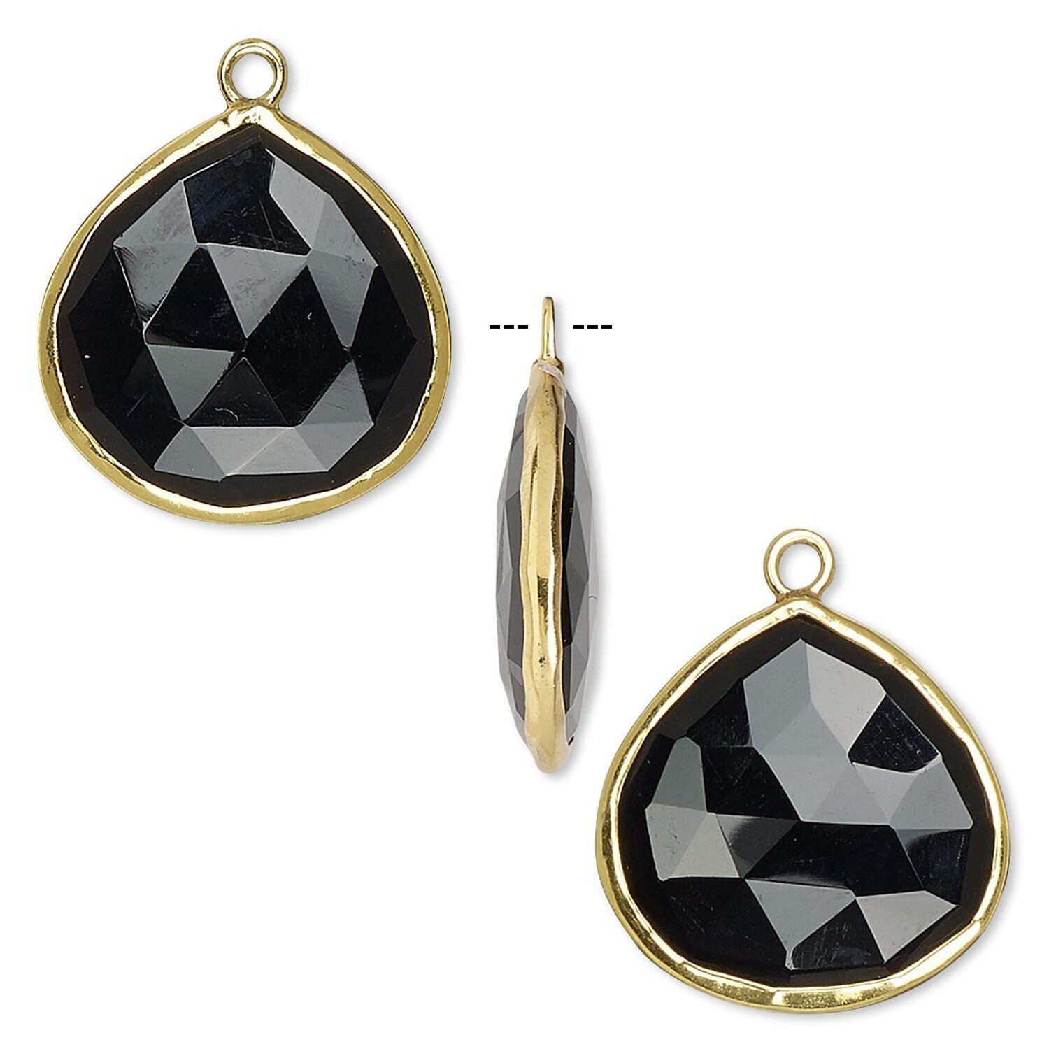 Drop, black onyx (dyed) and gold-finished sterling silver, 20mm double-sided faceted teardrop. Sold per pkg of 2.