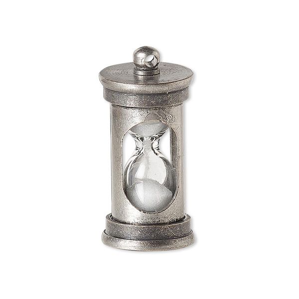 This miniature replica of an hourglass actually works and makes a great pendant to add functional beauty to jewelry designs. Following the classic design, the antique brass frame houses two glass bulbs containing sand that moves from one bulb to the other when you turn it over. The amount of sand in each hourglass will vary. The twist-off end caps have a silicone cushion inside for added protection.