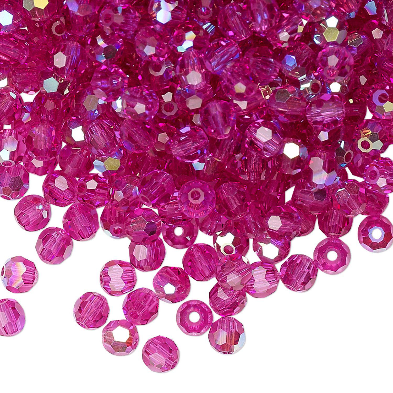 Bead 144pk fuchsia AB, Preciosa Czech crystal 4mm round