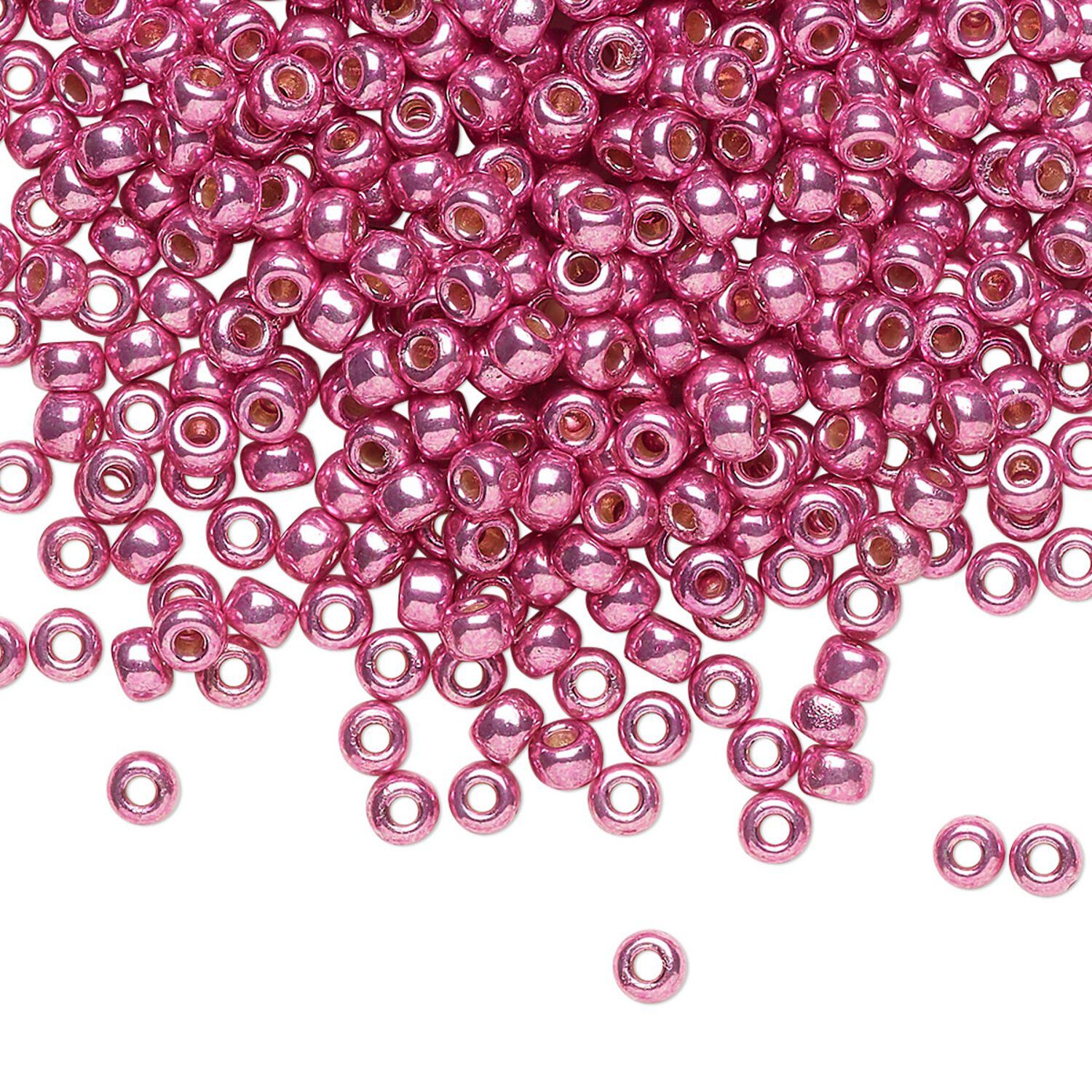 Seed bead, Miyuki, glass, pkg/50g, #8 rocaille, Duracoat® opaque galvanized hot pink, (RR-4210).