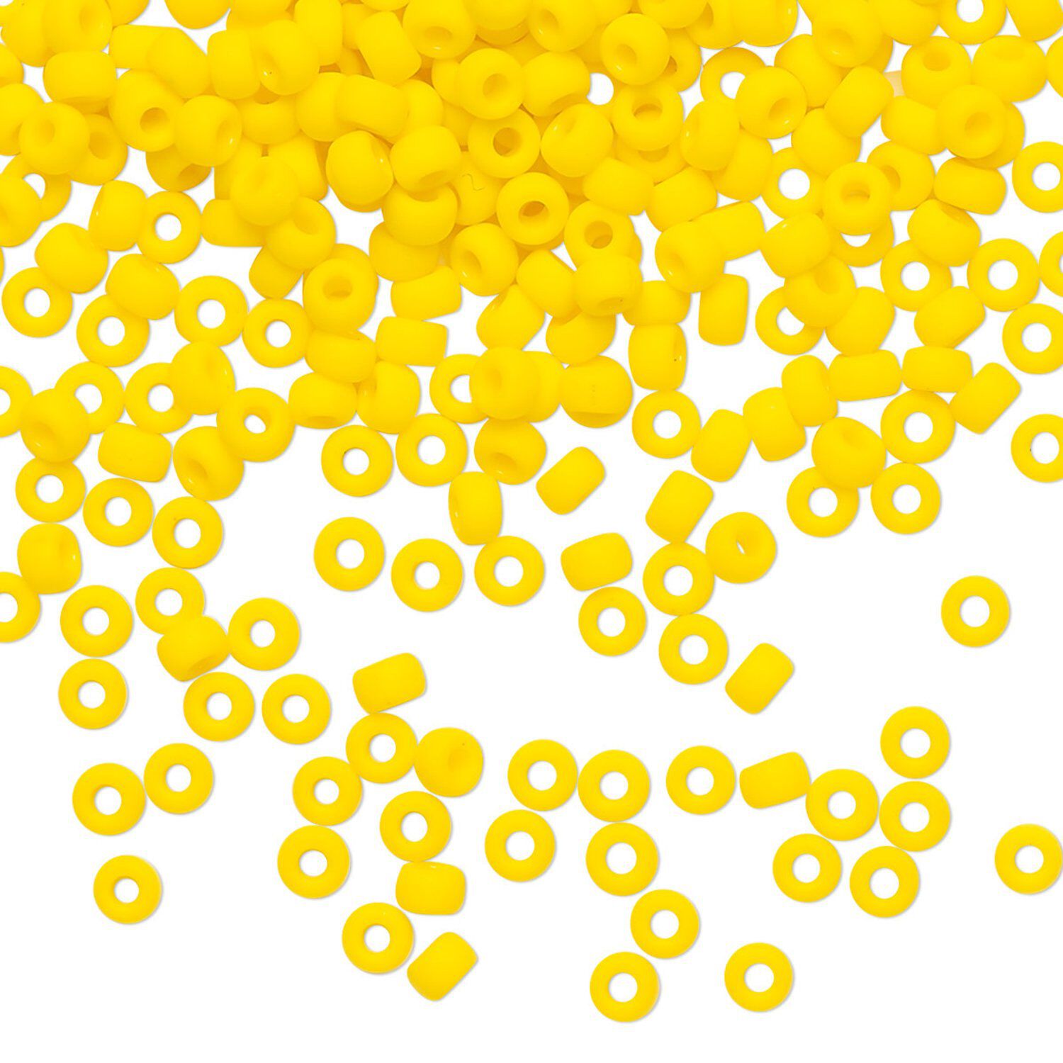 Seed bead, Miyuki, glass, pkg/50g, #8 rocaille, opaque matte canary, (RR-404DF).