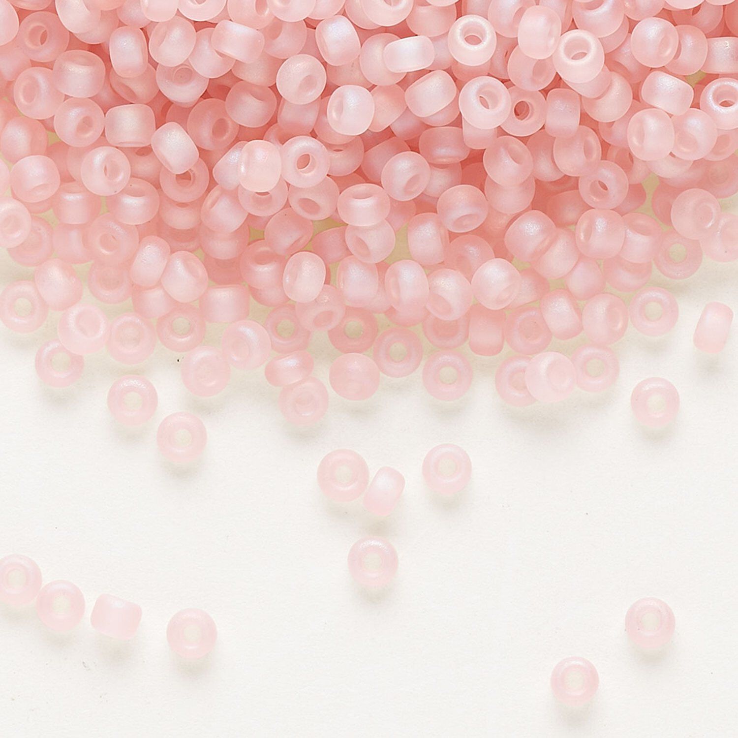 Seed bead, Miyuki, glass, pkg/250g, #8 rocaille, translucent matte rainbow pink mist, (RR-155FR).
