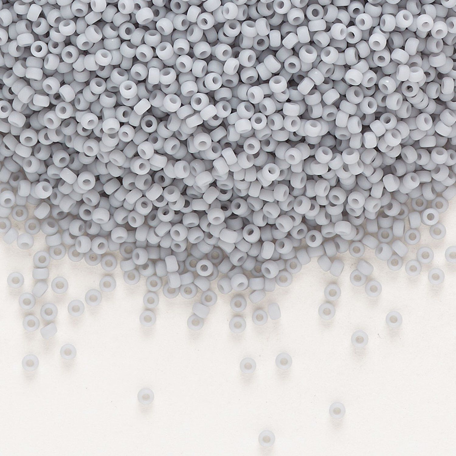 Seed bead, Miyuki, glass, pkg/250g, #15 rocaille, opaque matte grey, (RR-498F).