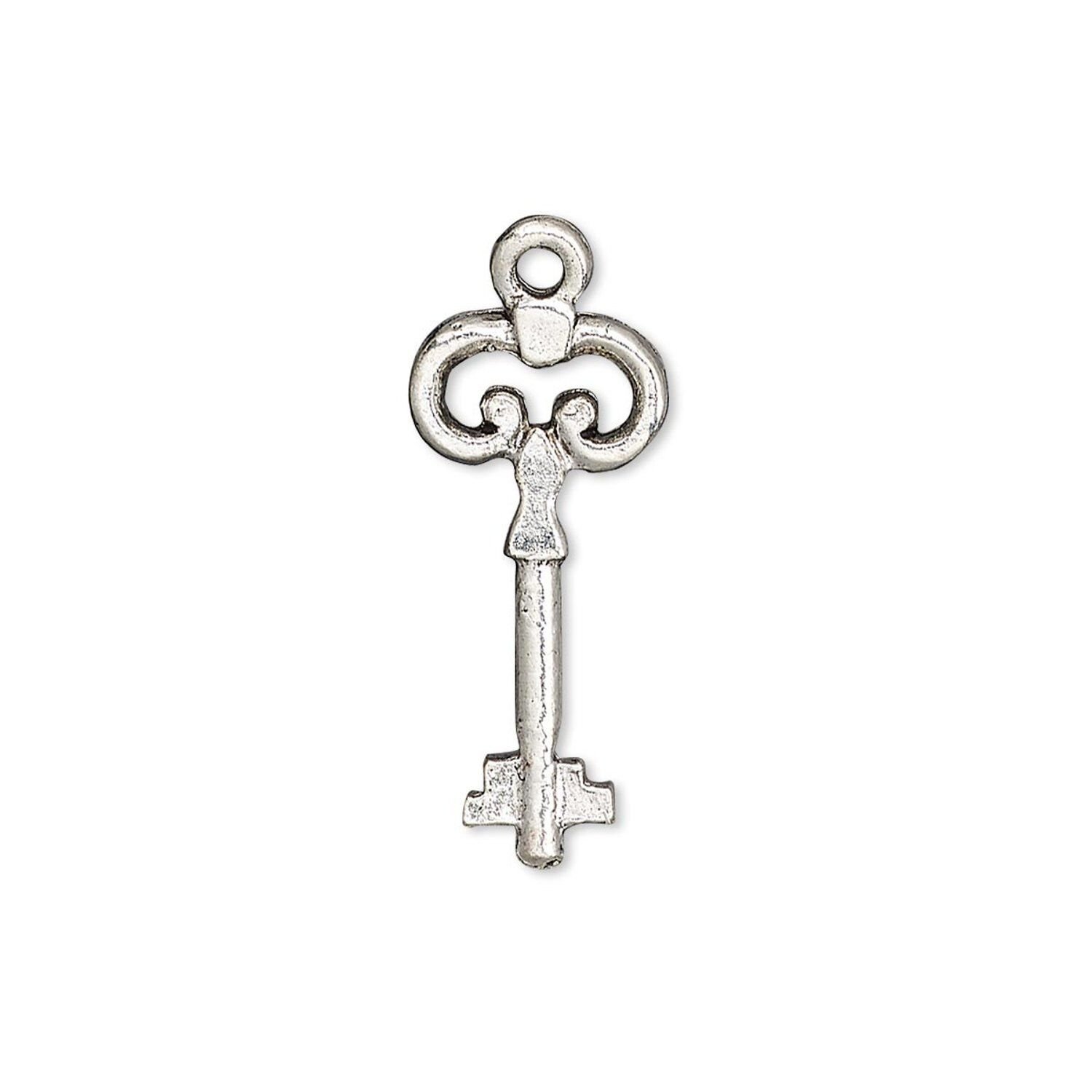 Antique silver-plated key charms feature crisp casting and clever details. These double-sided charms are ideal to use in themed jewelry designs and they make eye-catching additions to resale lines.