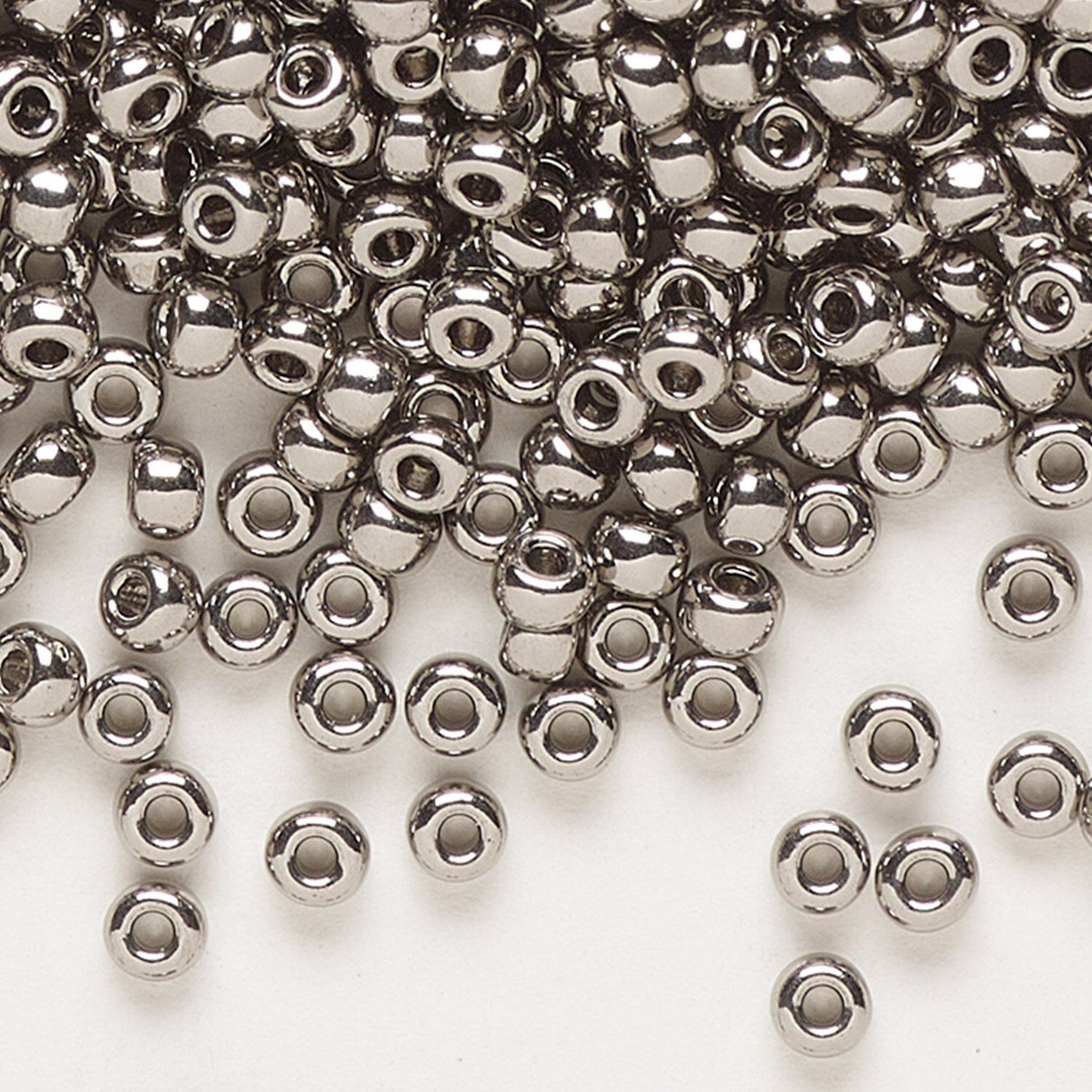 Seed bead, Miyuki, glass, pkg/50g, #8 rocaille, opaque nickel-plated, (RR-190).