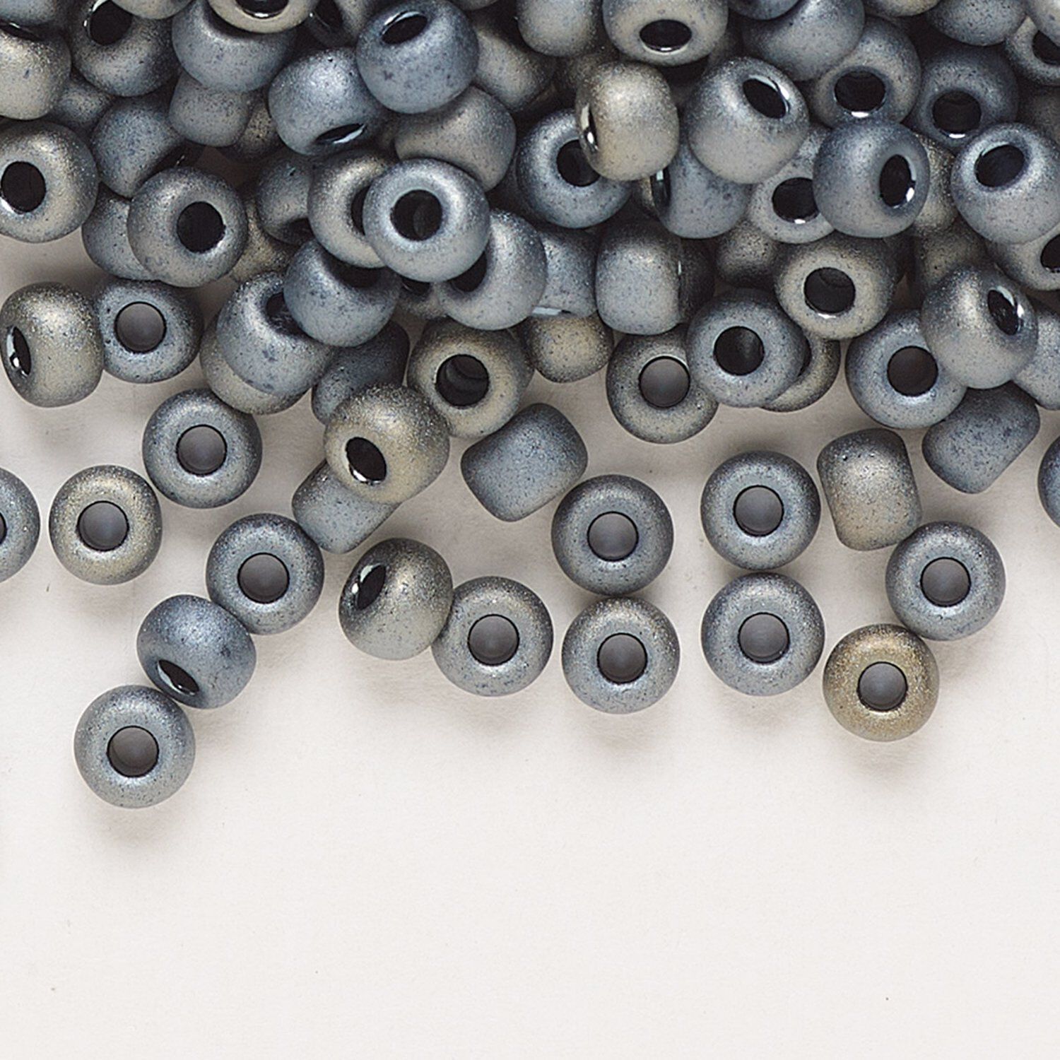 Seed bead, Miyuki, glass, pkg/250g, #6 rocaille, opaque matte metallic silver grey, (RR-2002).