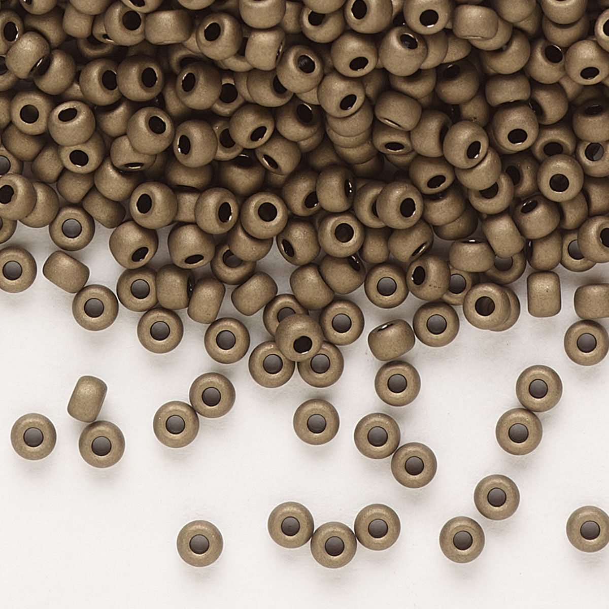 Seed bead, Miyuki, glass, pkg/50g, #8 rocaille, opaque matte metallic dark bronze, (RR-2006).