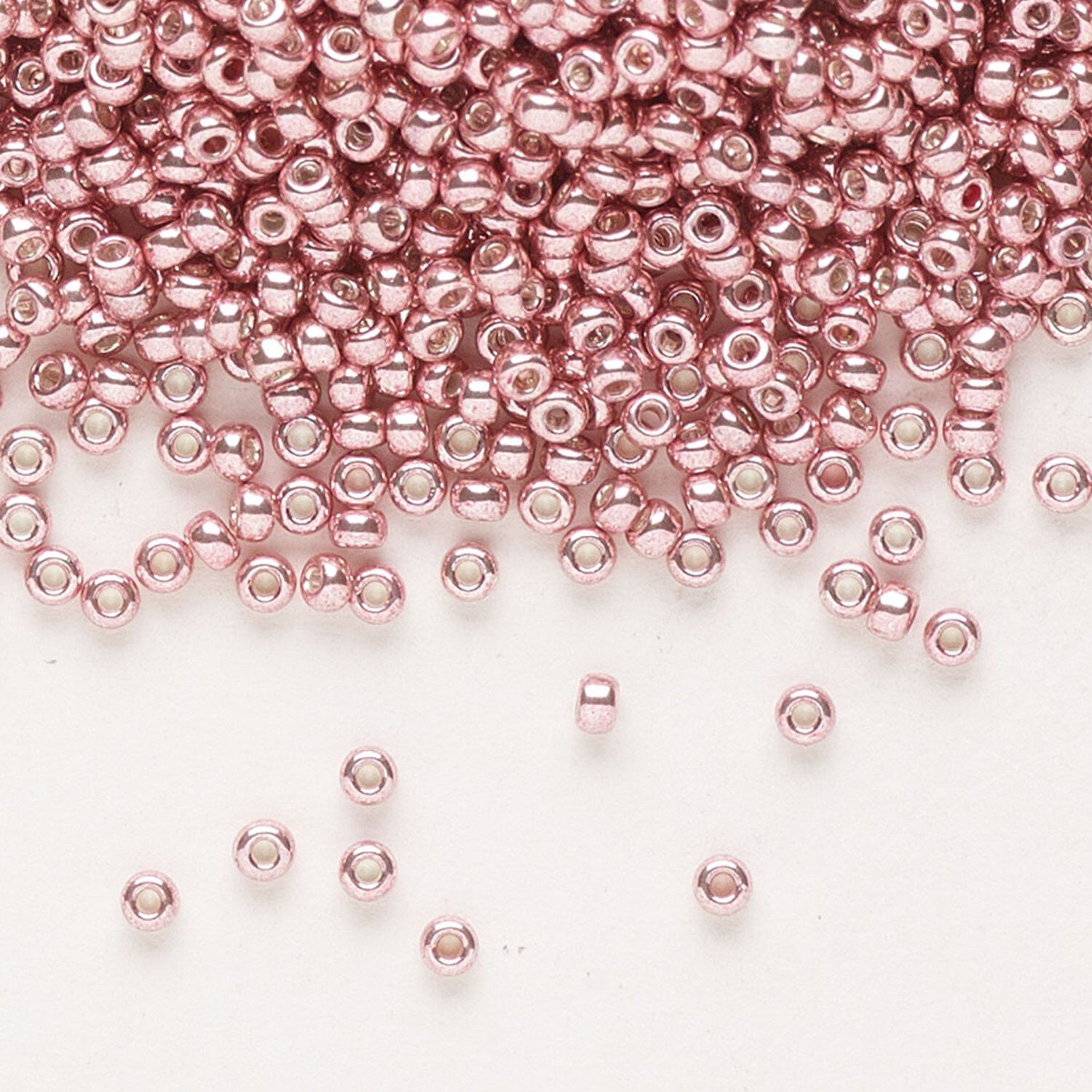 Seed bead, Miyuki, glass, pkg/25g, #11 rocaille, opaque galvanized pink blush, (RR-1067).