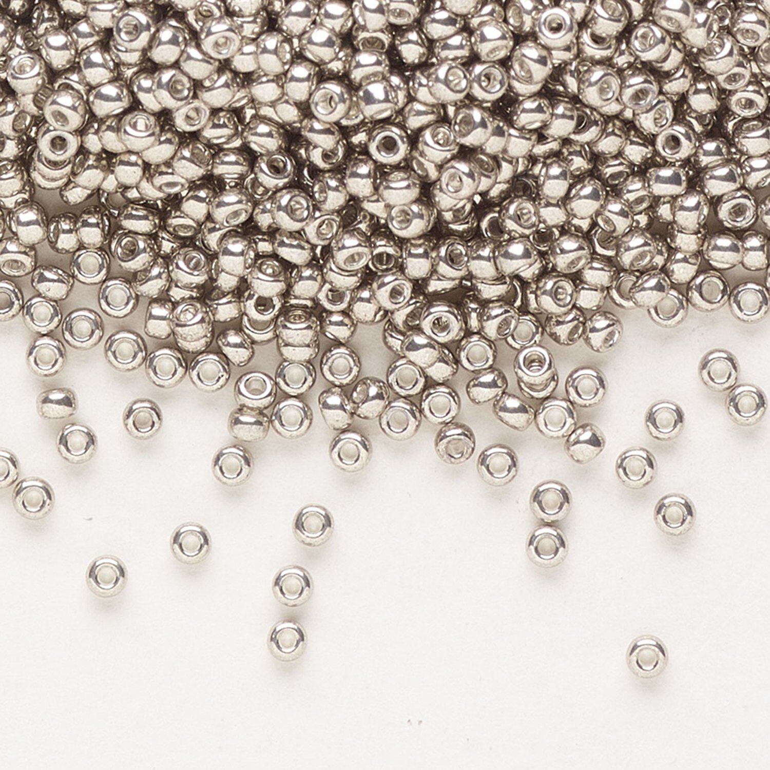 Seed bead, Miyuki, glass, pkg/25g, #11 rocaille, opaque galvanized pewter, (RR-1095).