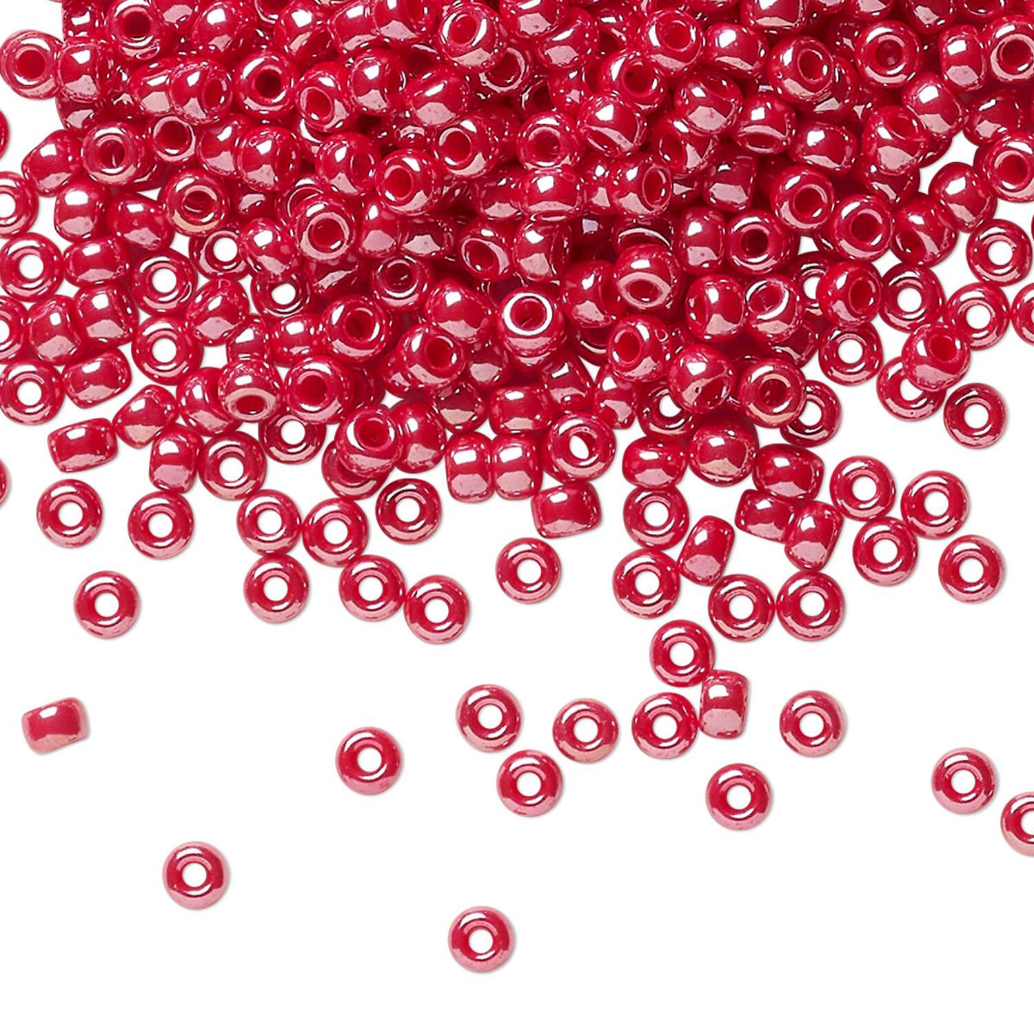 Seed bead, Miyuki, glass, pkg/50g, #8 rocaille, opaque luster cadillac red, (RR-425).
