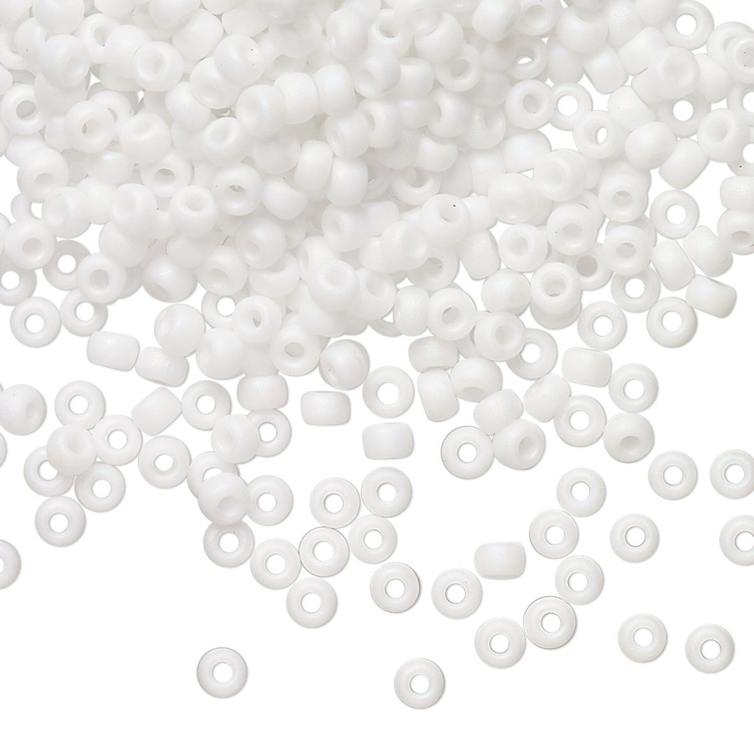 Seed bead, Miyuki, glass, pkg/50g, #8 rocaille, opaque matte rainbow chalk white, (RR-402FR).