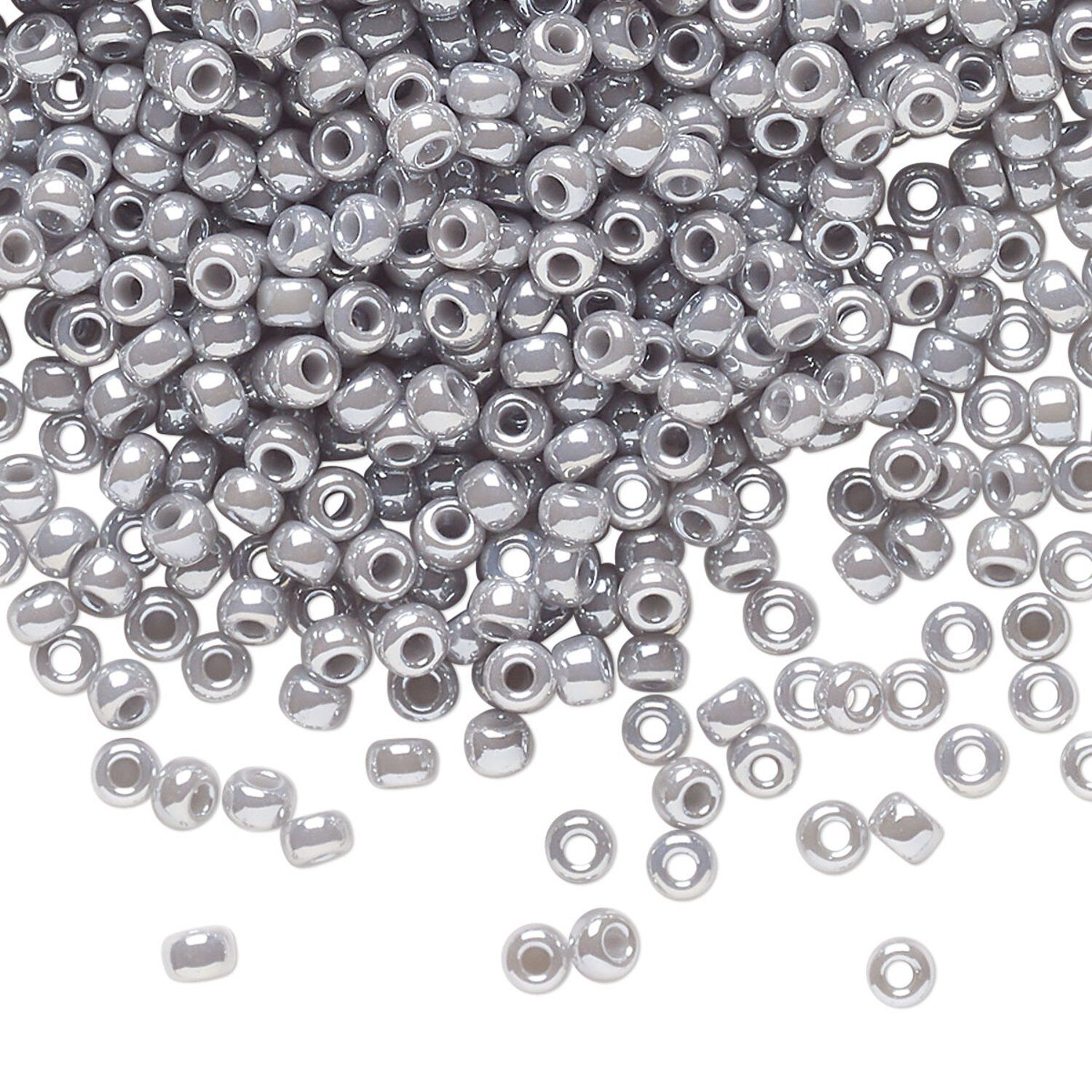 Seed bead, Miyuki, glass, pkg/250g, #8 rocaille, opaque luster ghost grey, (RR-443).